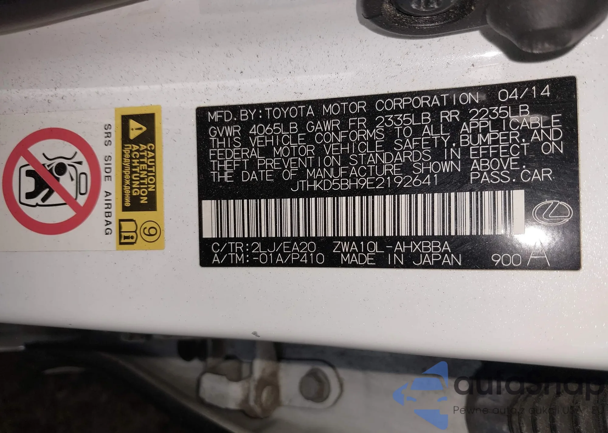 LOT: 42563807 VIN: JTHKD5BH9E2192641