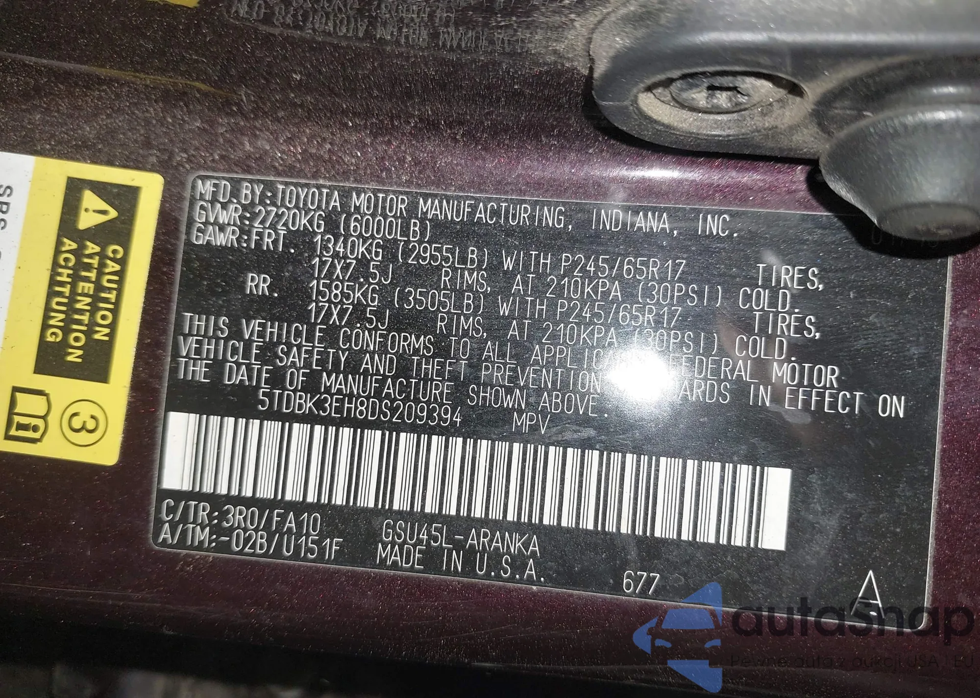 • VIN 5TDBK3EH8DS209394