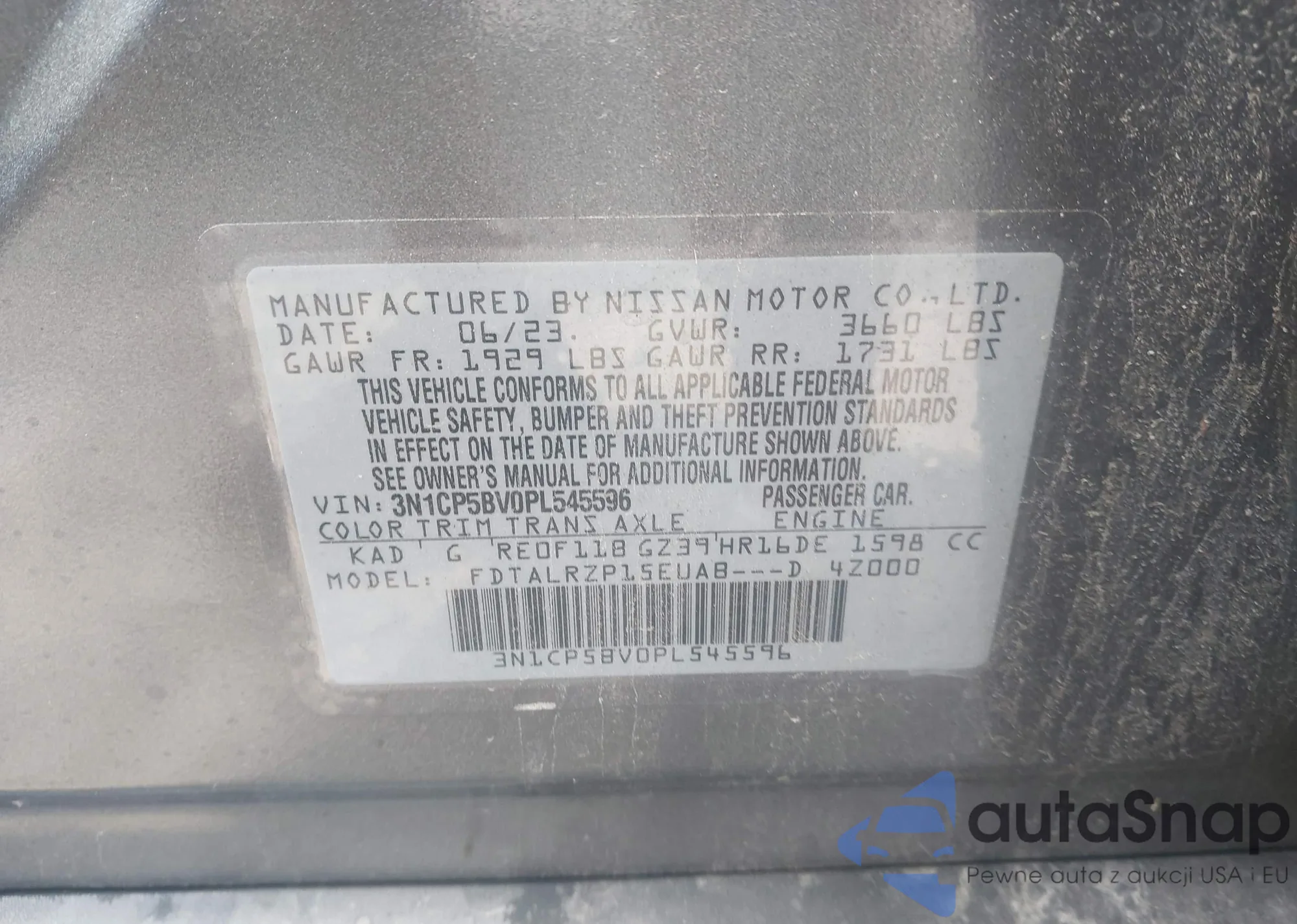 • VIN 3N1CP5BV0PL545596