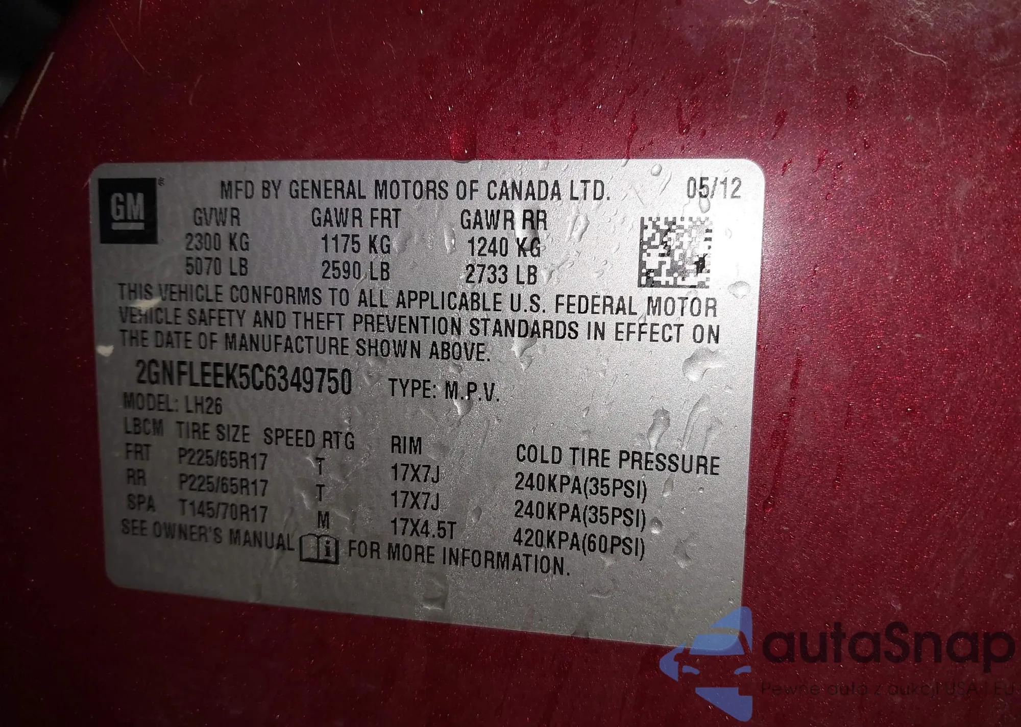 • VIN 2GNFLEEK5C6349750