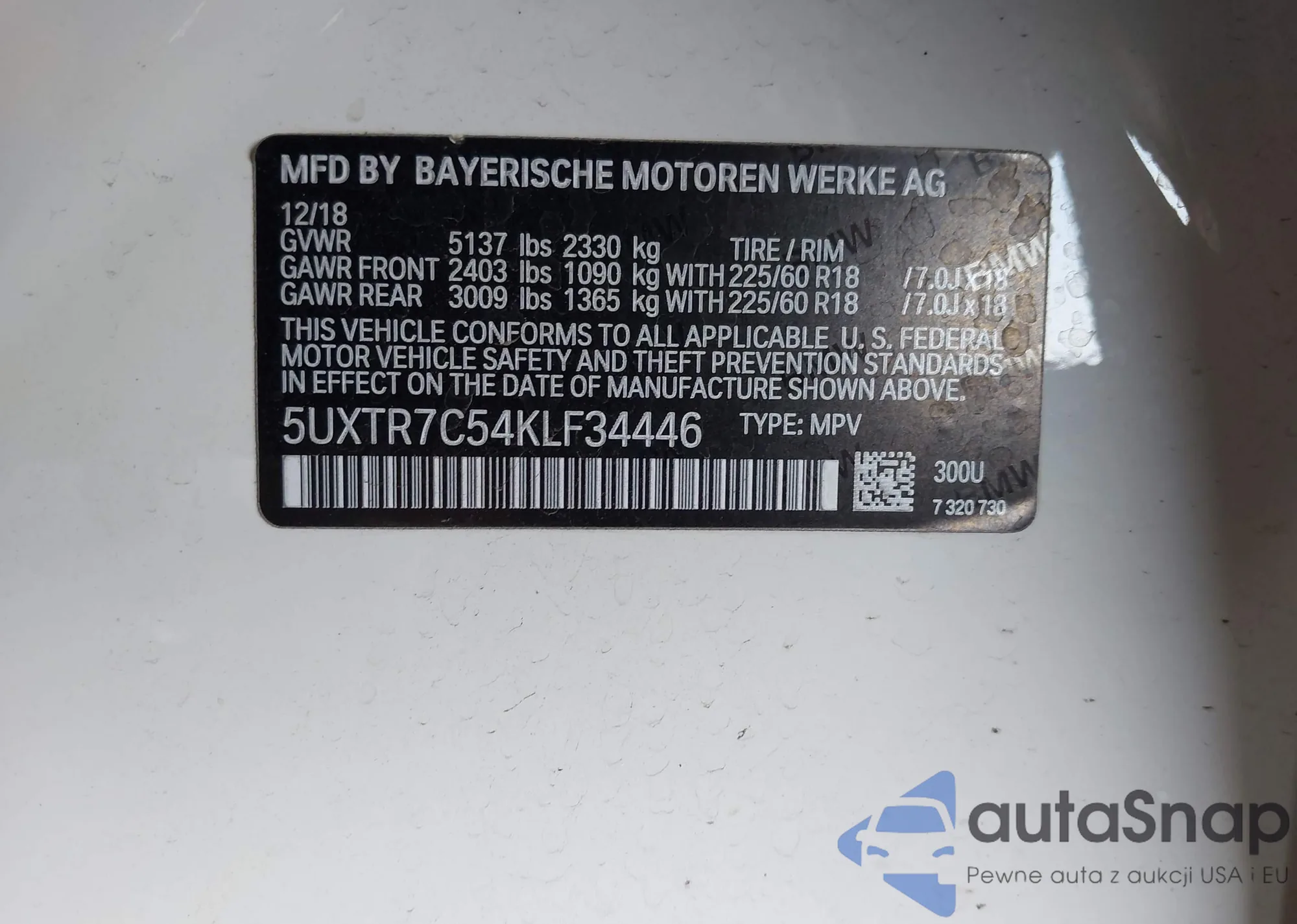 LOT: 42594659 VIN: 5UXTR7C54KLF34446
