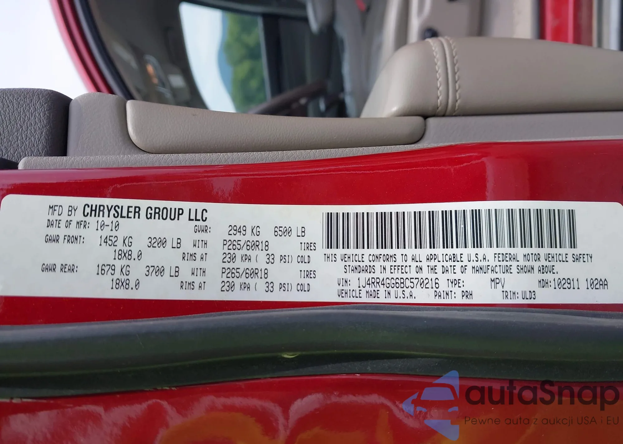LOT: 42913090 VIN: 1J4RR4GG6BC570216