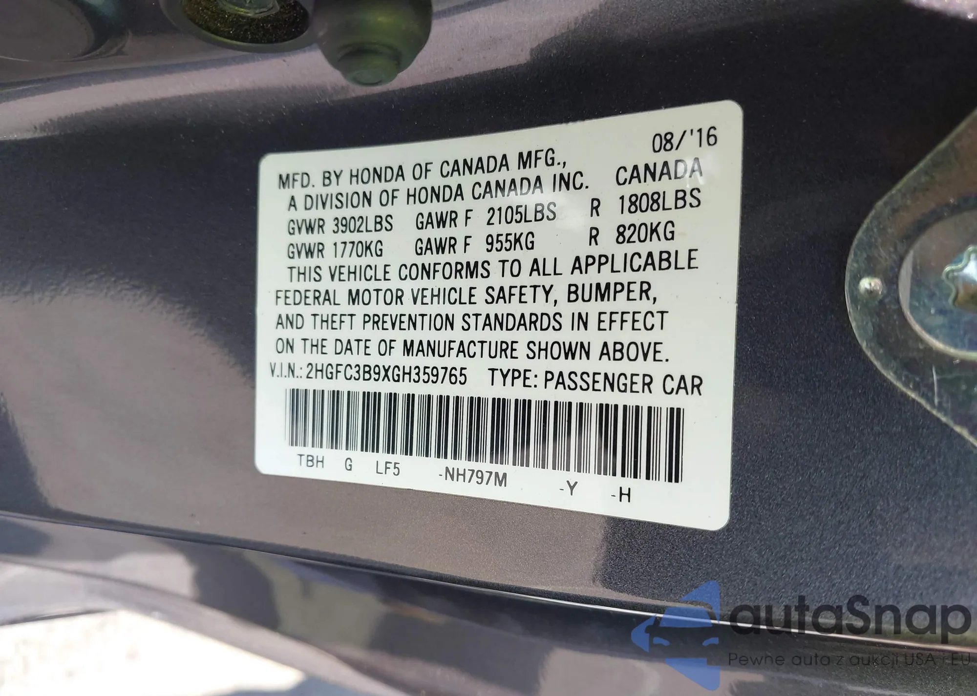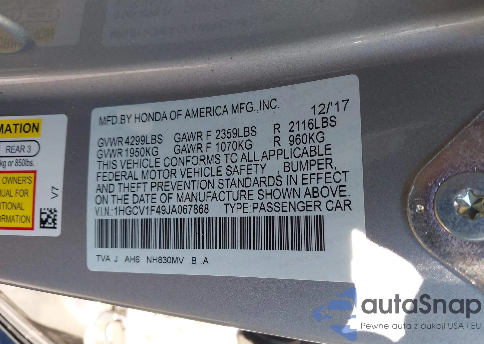 • VIN 1HGCV1F49JA067868
