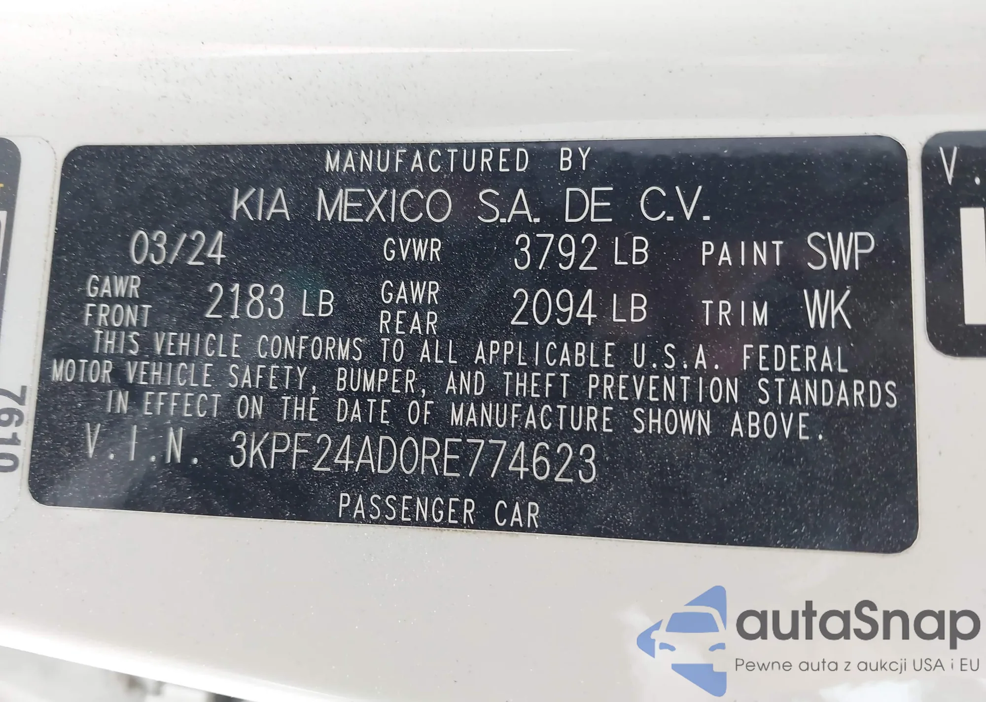 LOT: 42793307 VIN: 3KPF24AD0RE774623