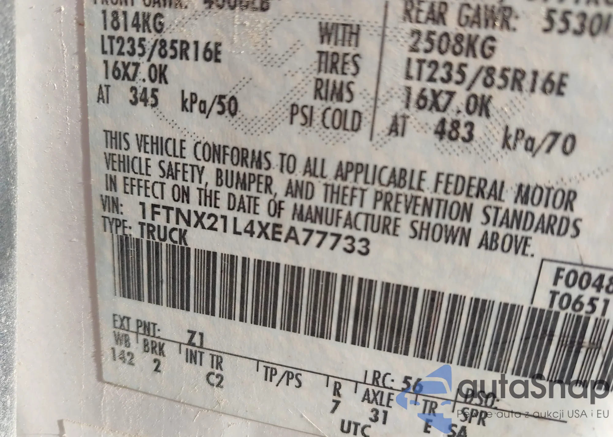LOT: 42774980 VIN: NM0GE9G74G1233498