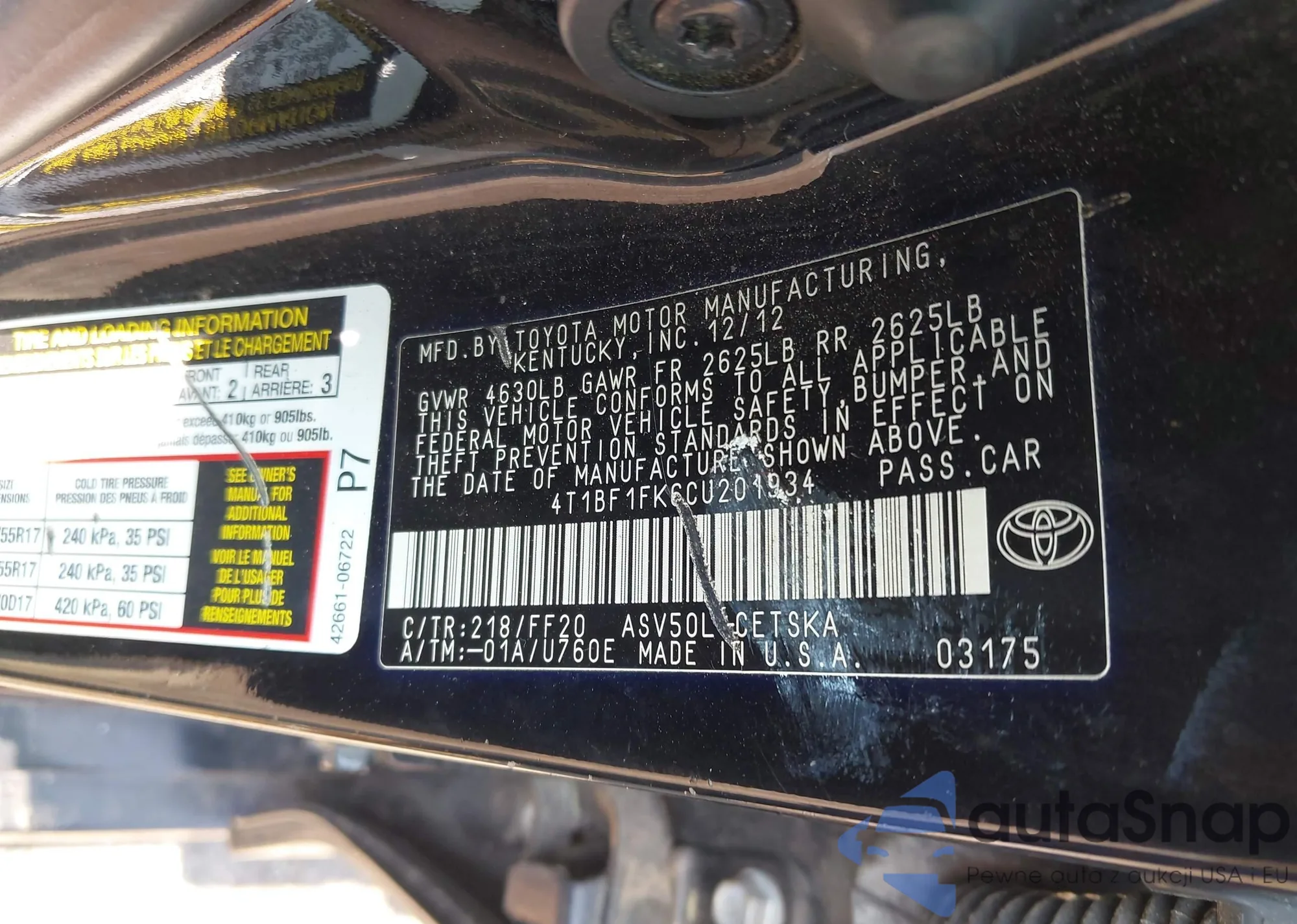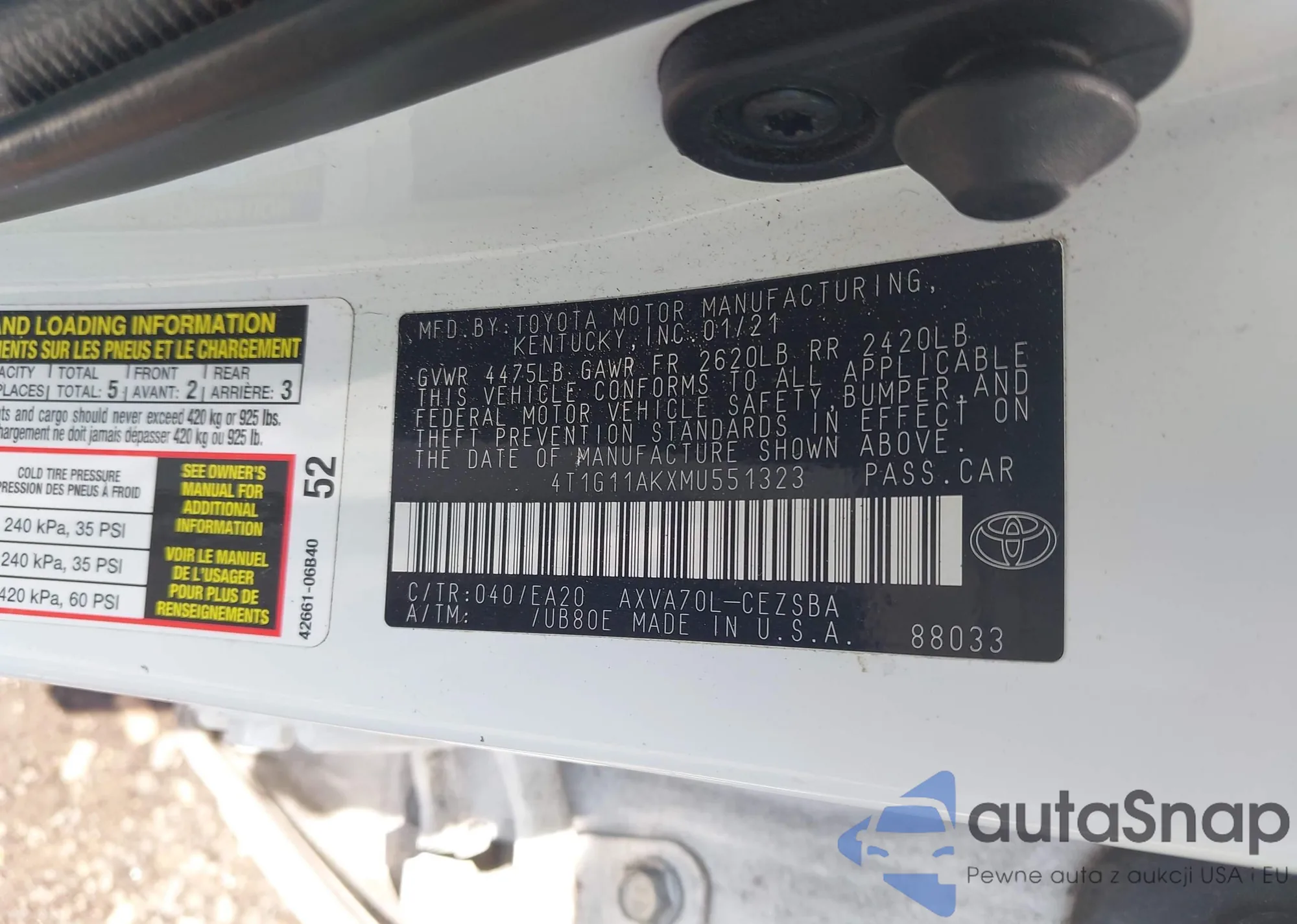 LOT: 42481700 VIN: 4T1G11AKXMU551323