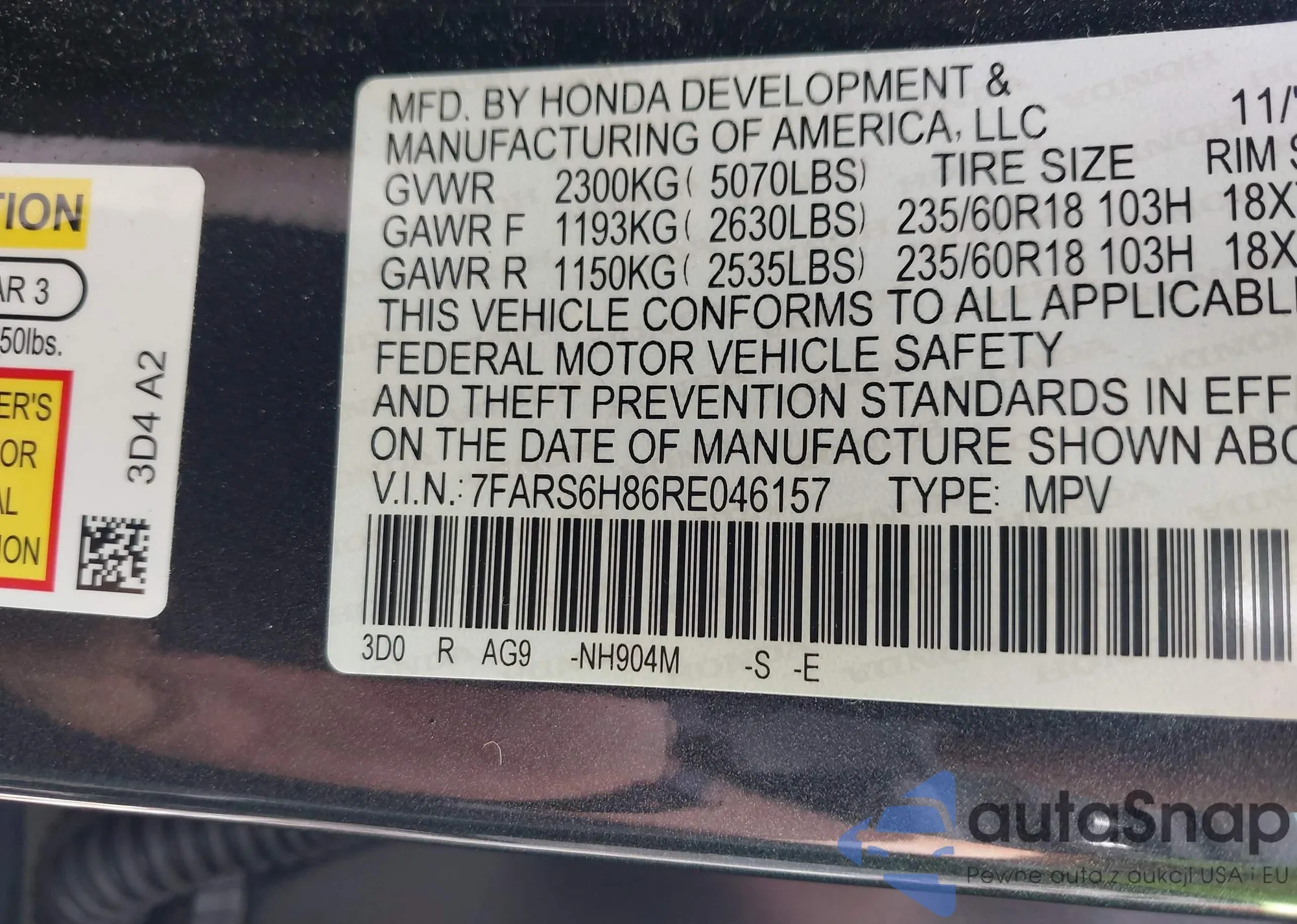 • VIN 7FARS6H86RE046157