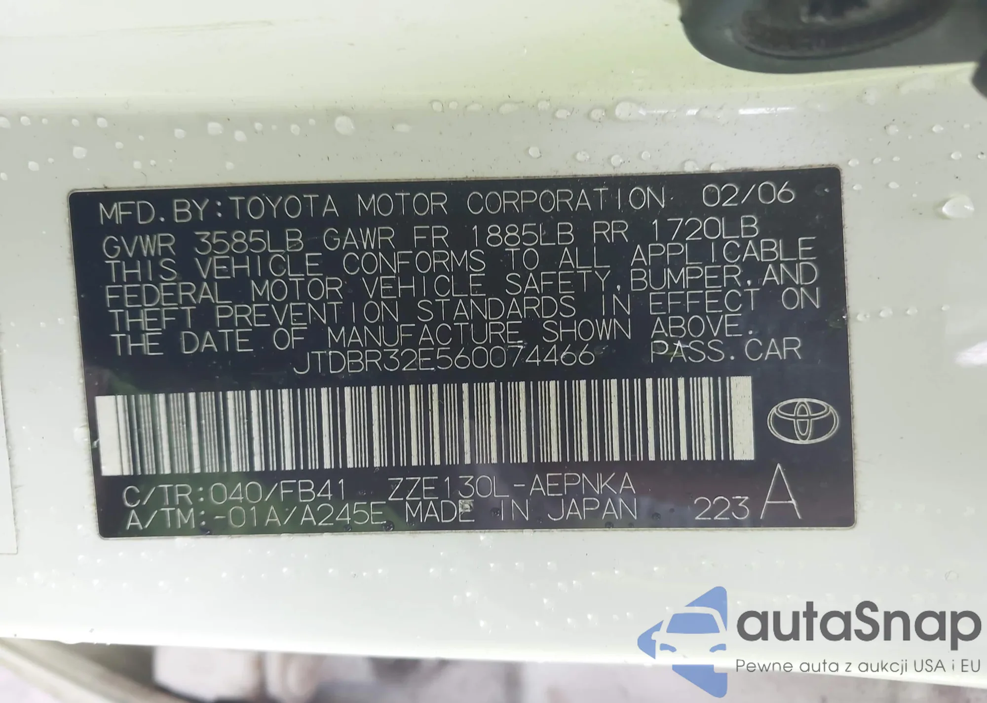 • VIN 1NXBU4EE9AZ324238