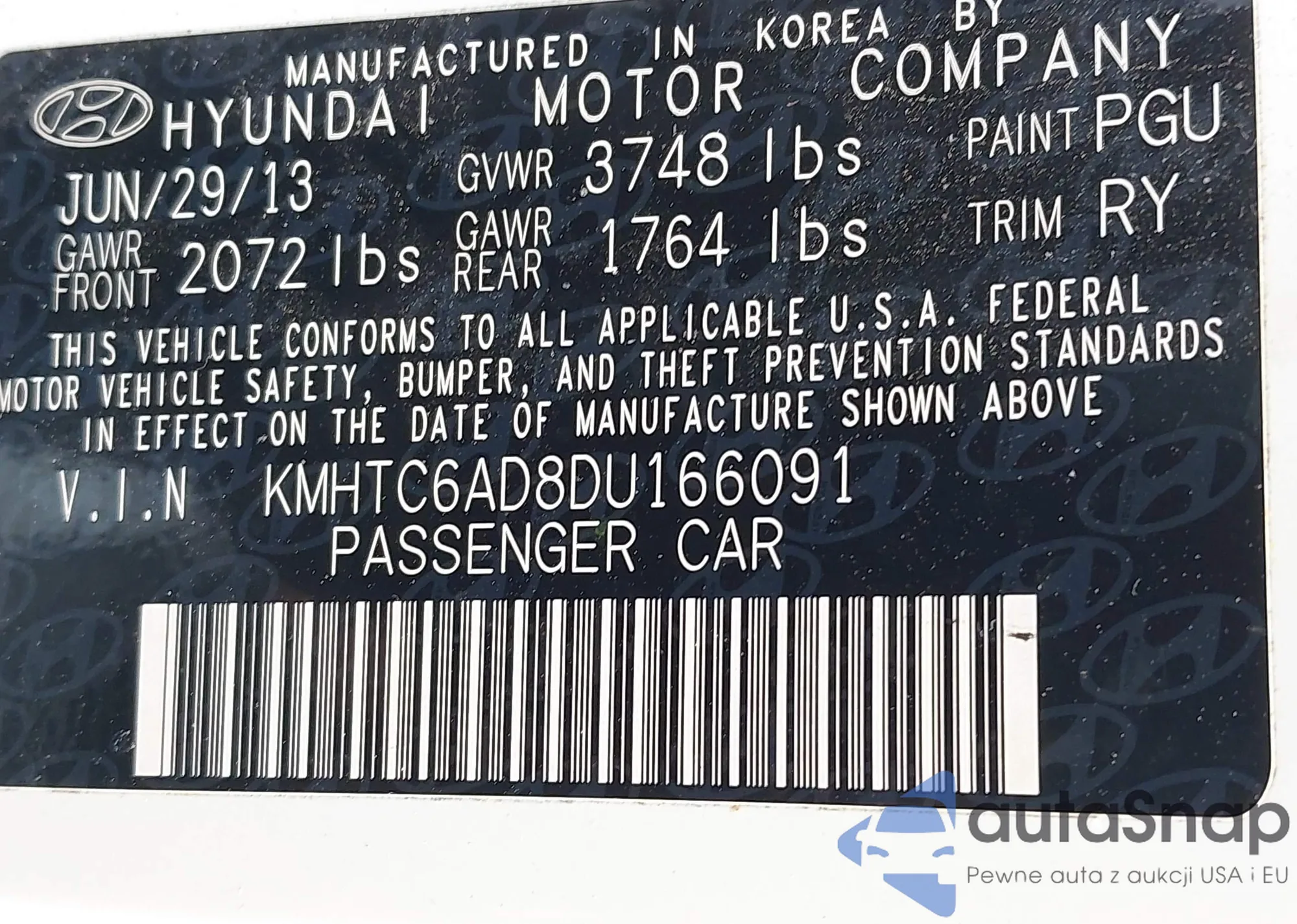 • VIN KMHTC6AD8DU166091