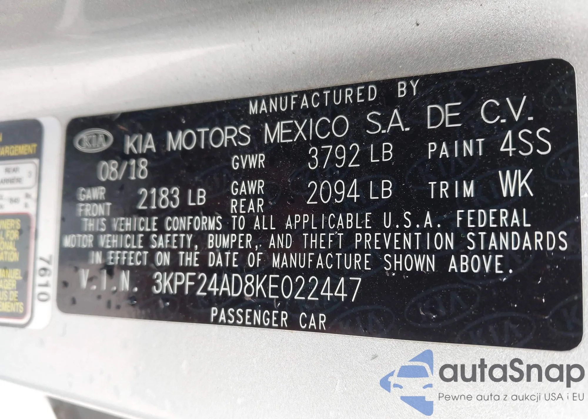 • VIN 4F2CZ49H98KM20892