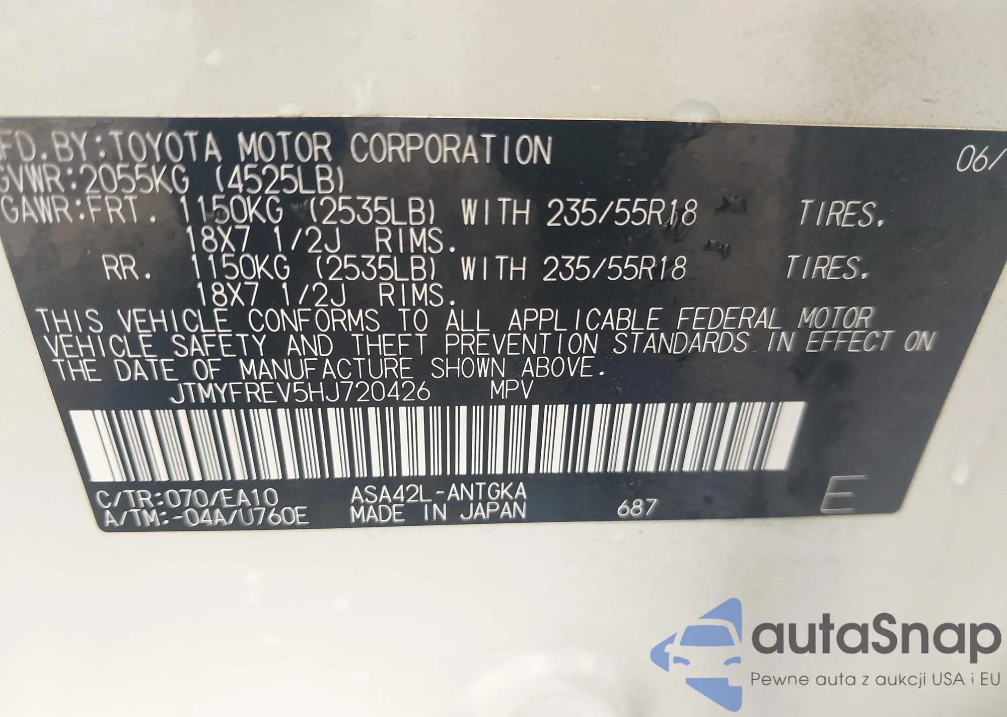 LOT: 42880365 VIN: JTMYFREV5HJ720426