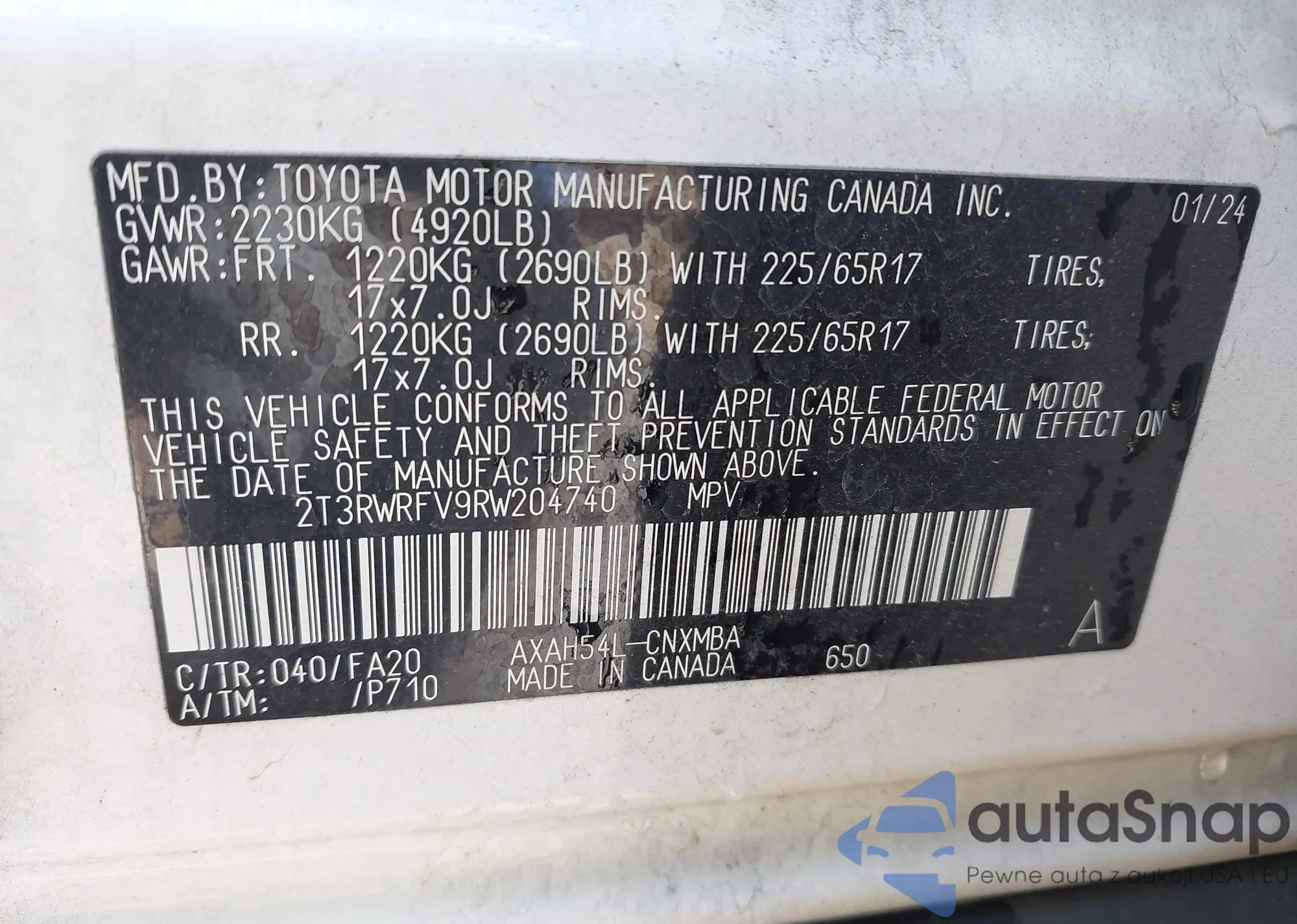 • VIN JF2SJAGCXHH452094