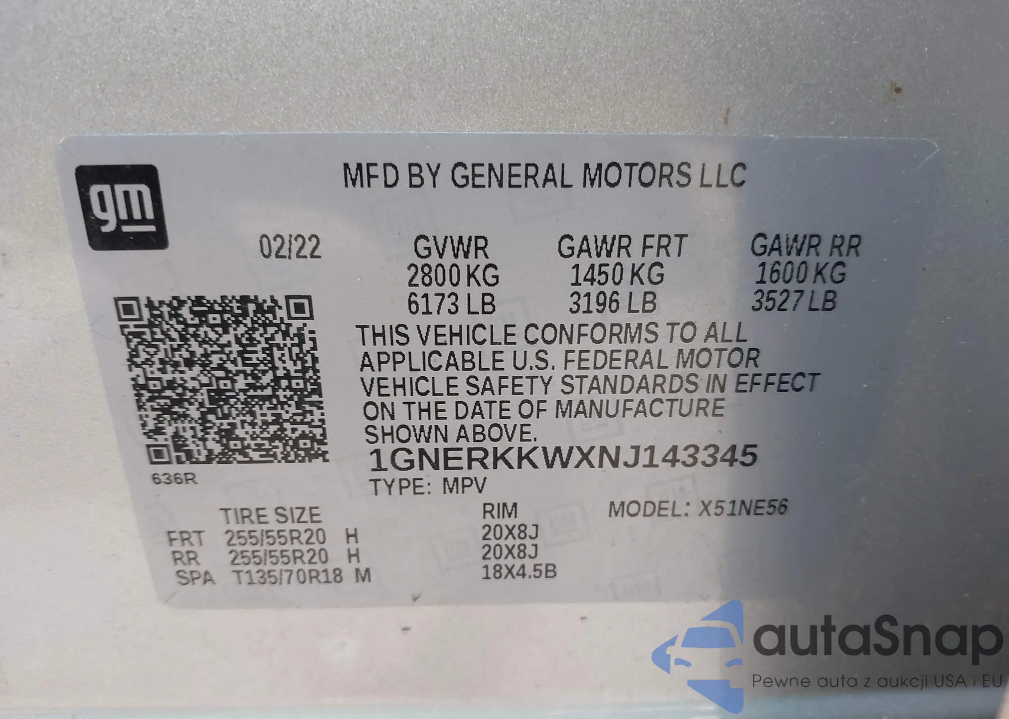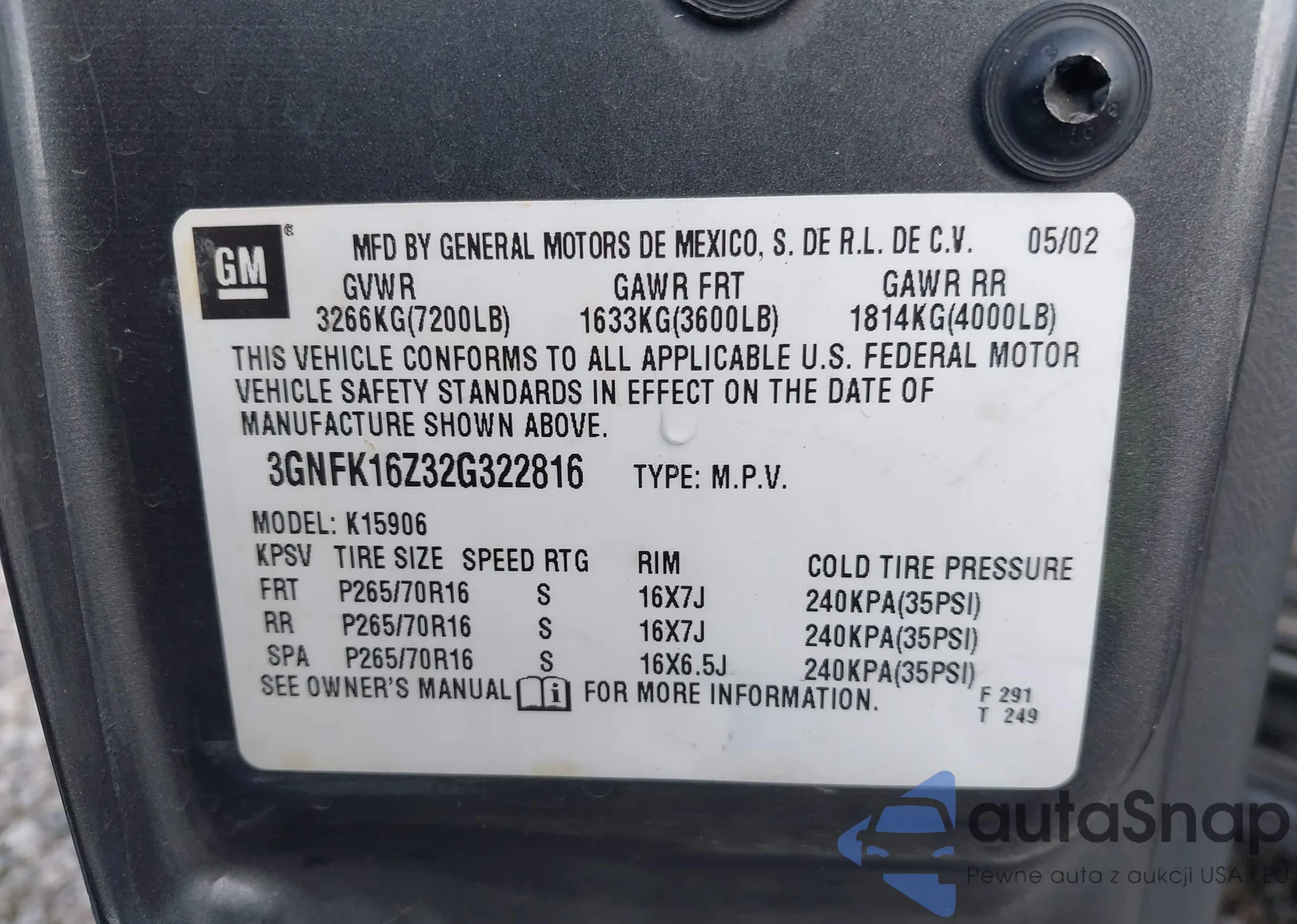 LOT: 42581522 VIN: 3GNFK16Z32G322816