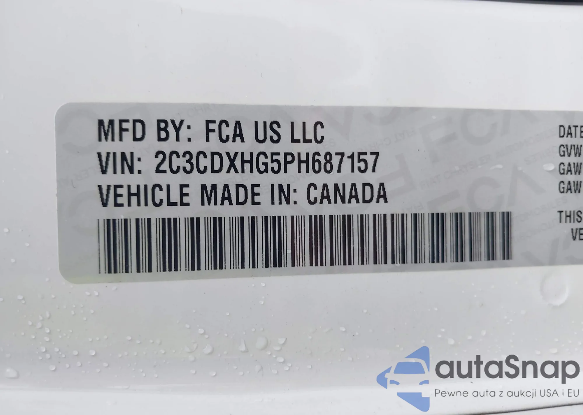 • VIN 2C3CDXHG5PH687157