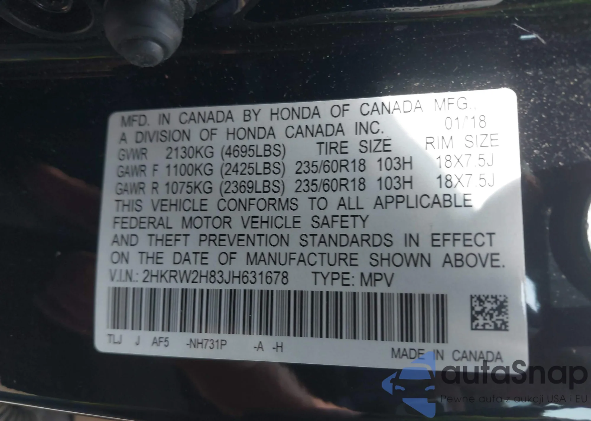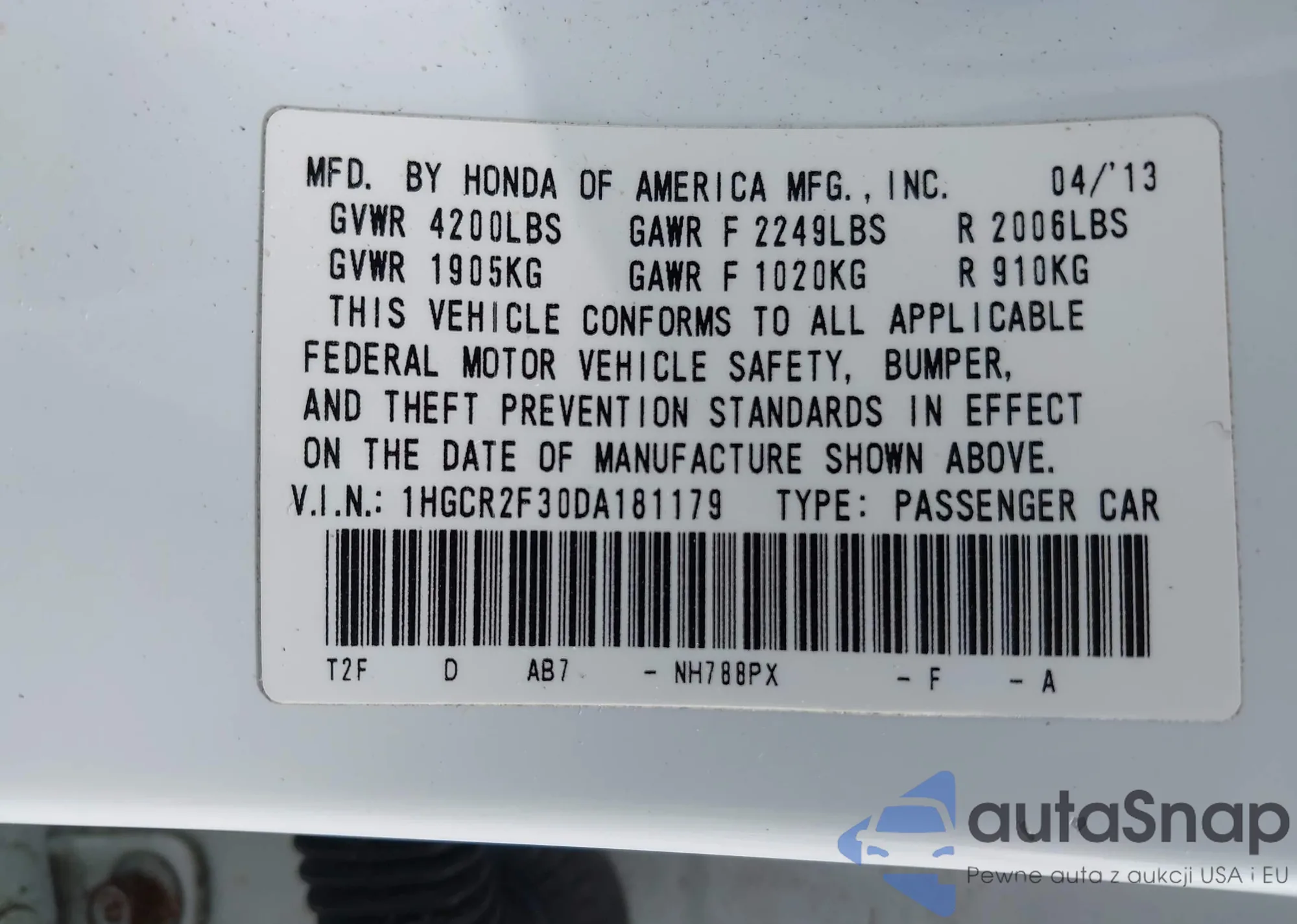 • VIN 5FNYF4H91CB027872