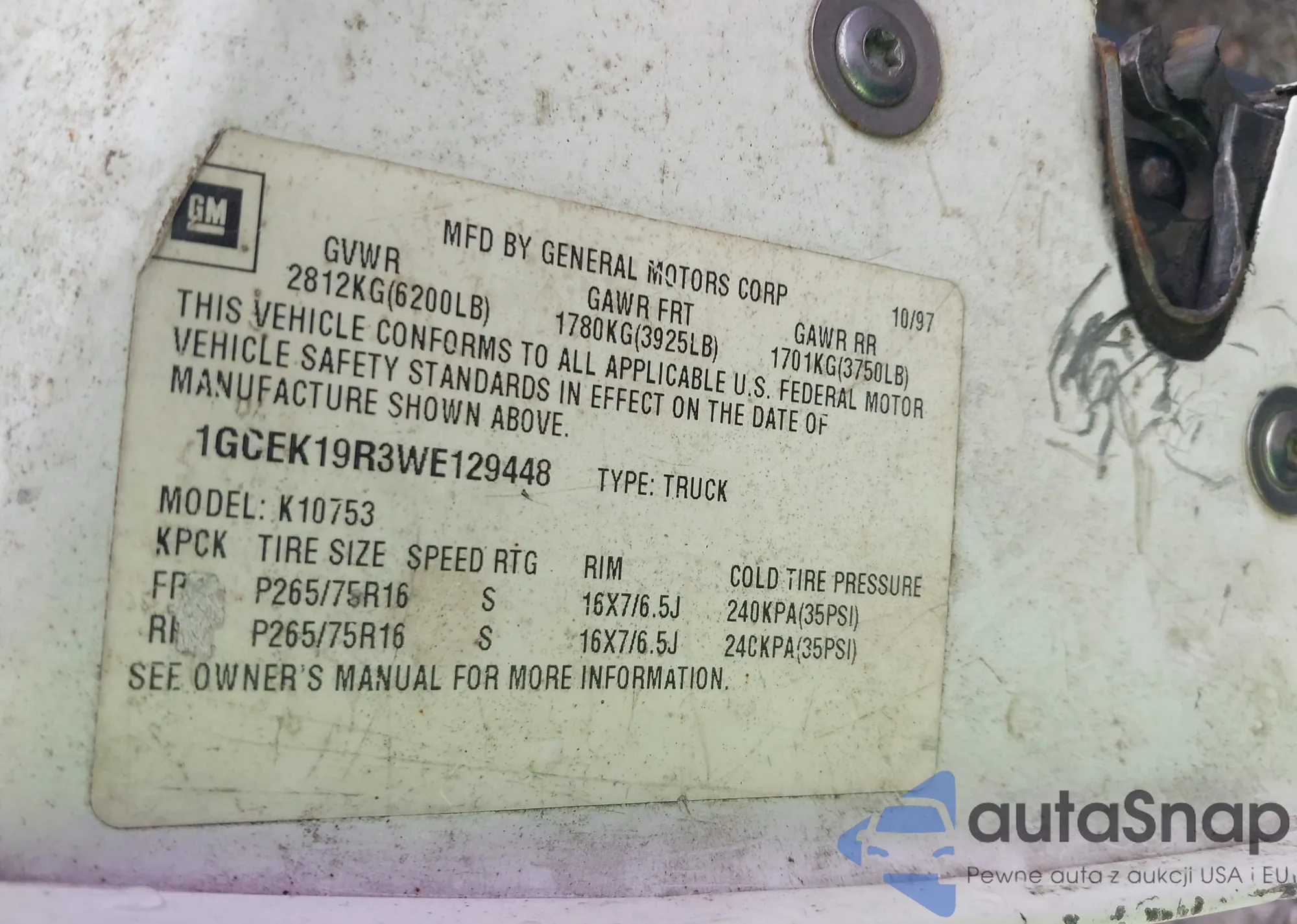 LOT: 42975561 VIN: 1GCEK19R3WE129448