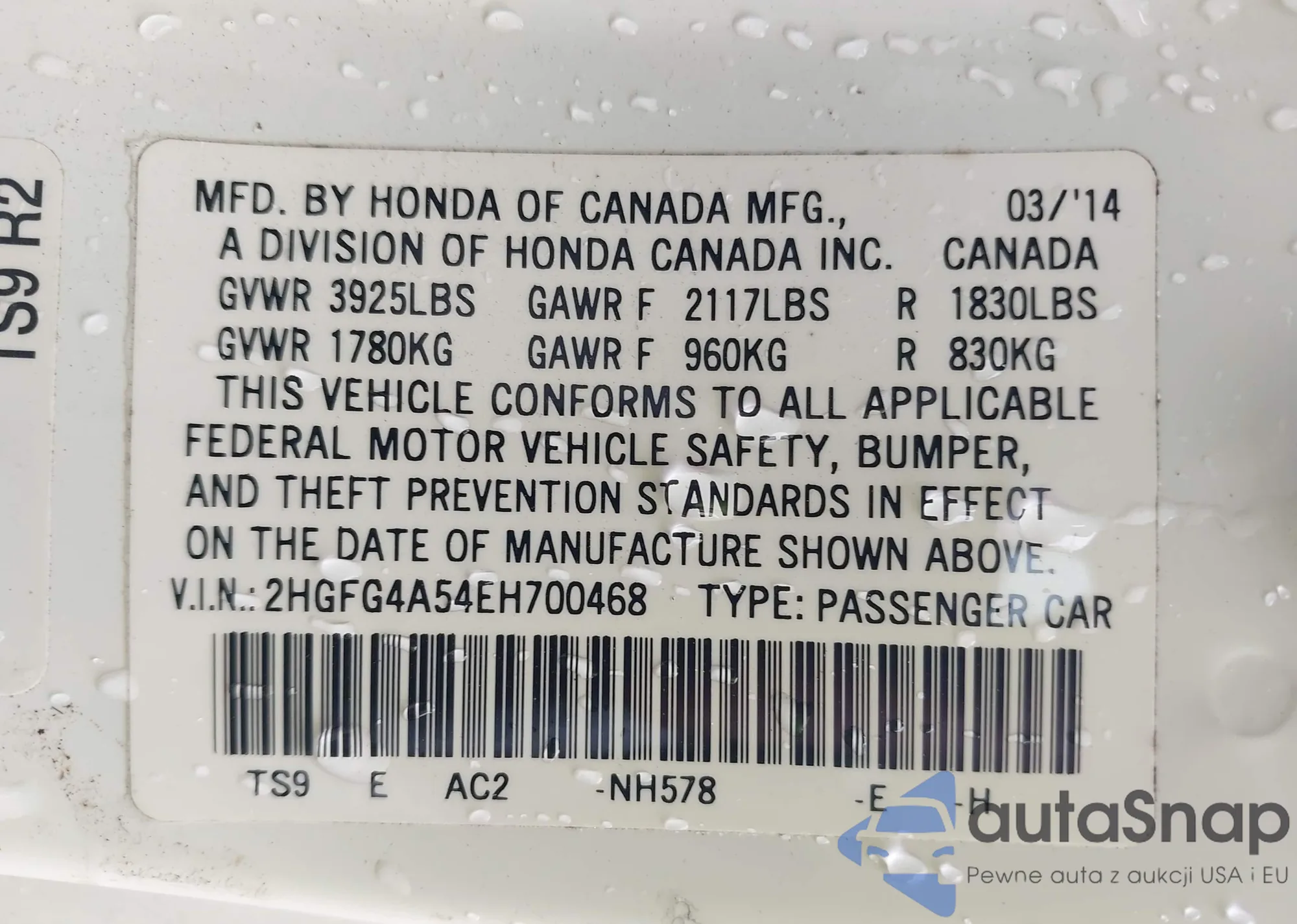 • VIN 2HGFG4A54EH700468