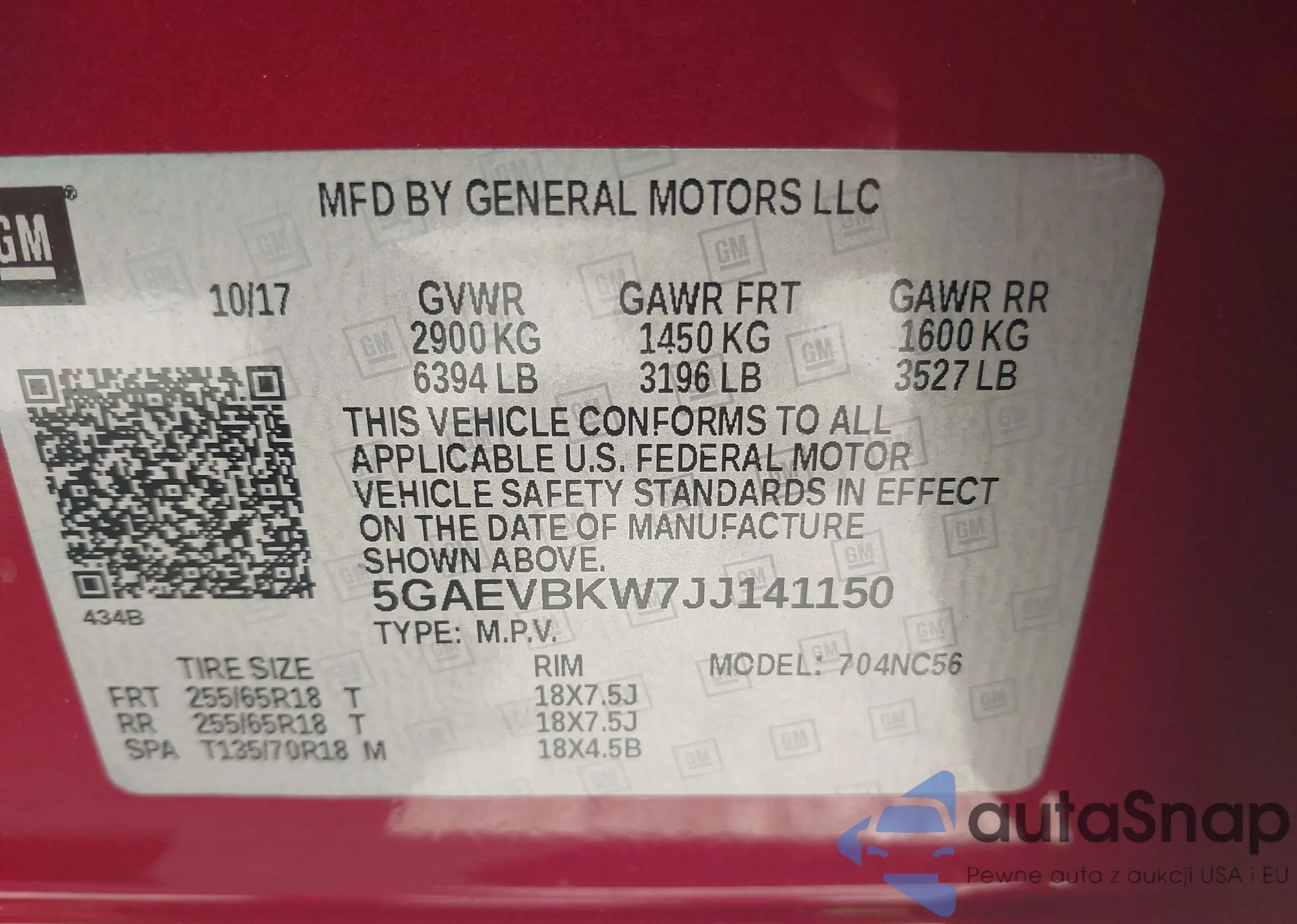 LOT: 42495169 VIN: 5GAEVBKW7JJ141150