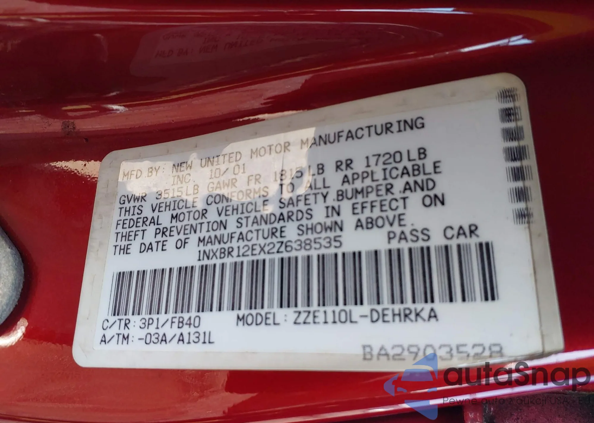 • VIN 1NXBR12EX2Z638535