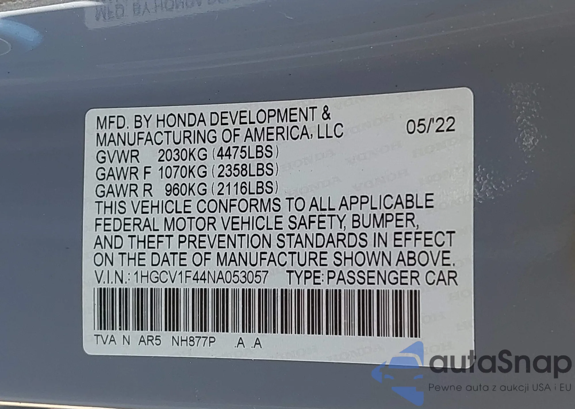 LOT: 42678552 VIN: 5N1DR3CB7NC212739