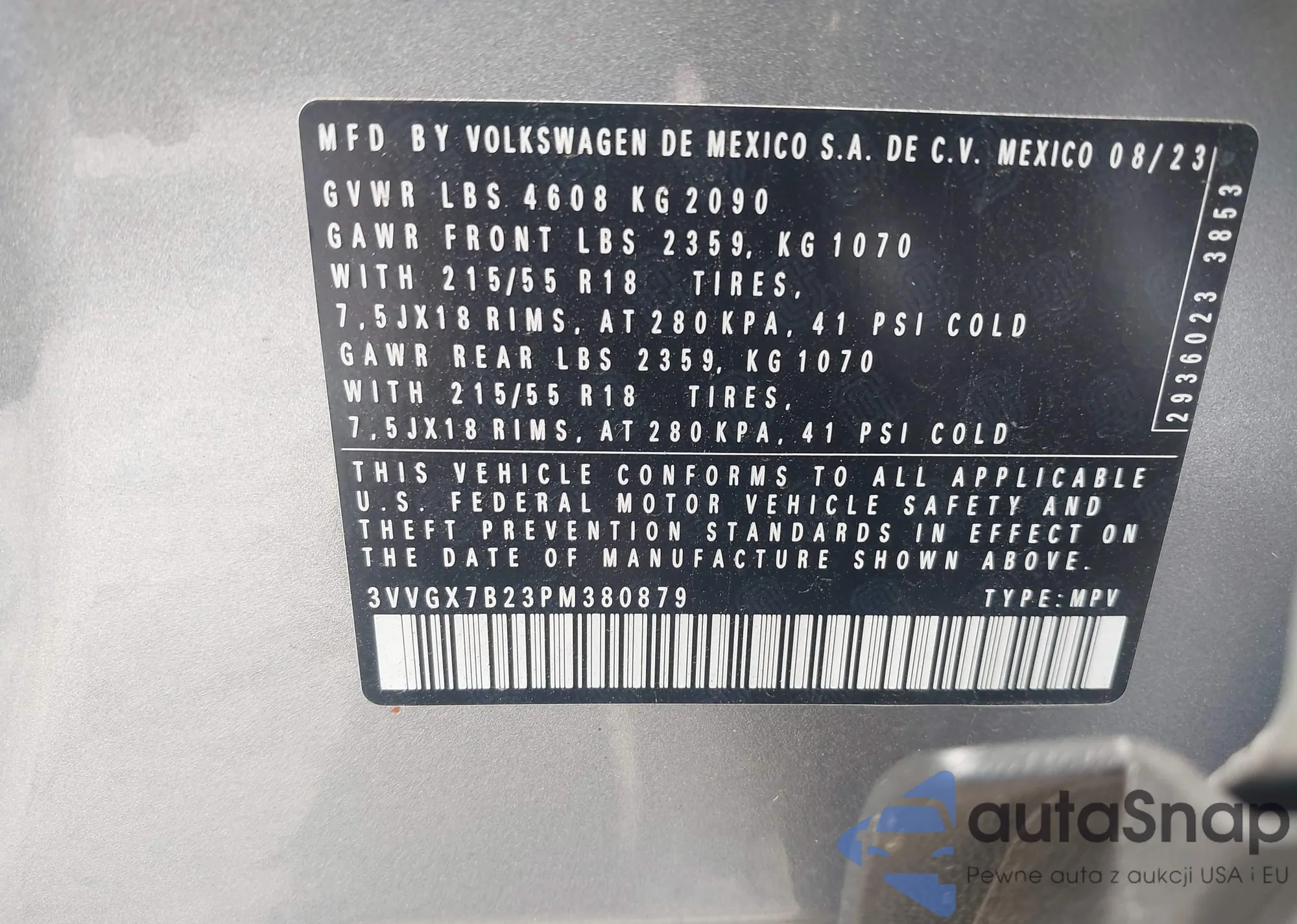• VIN 3VVGX7B23PM380879