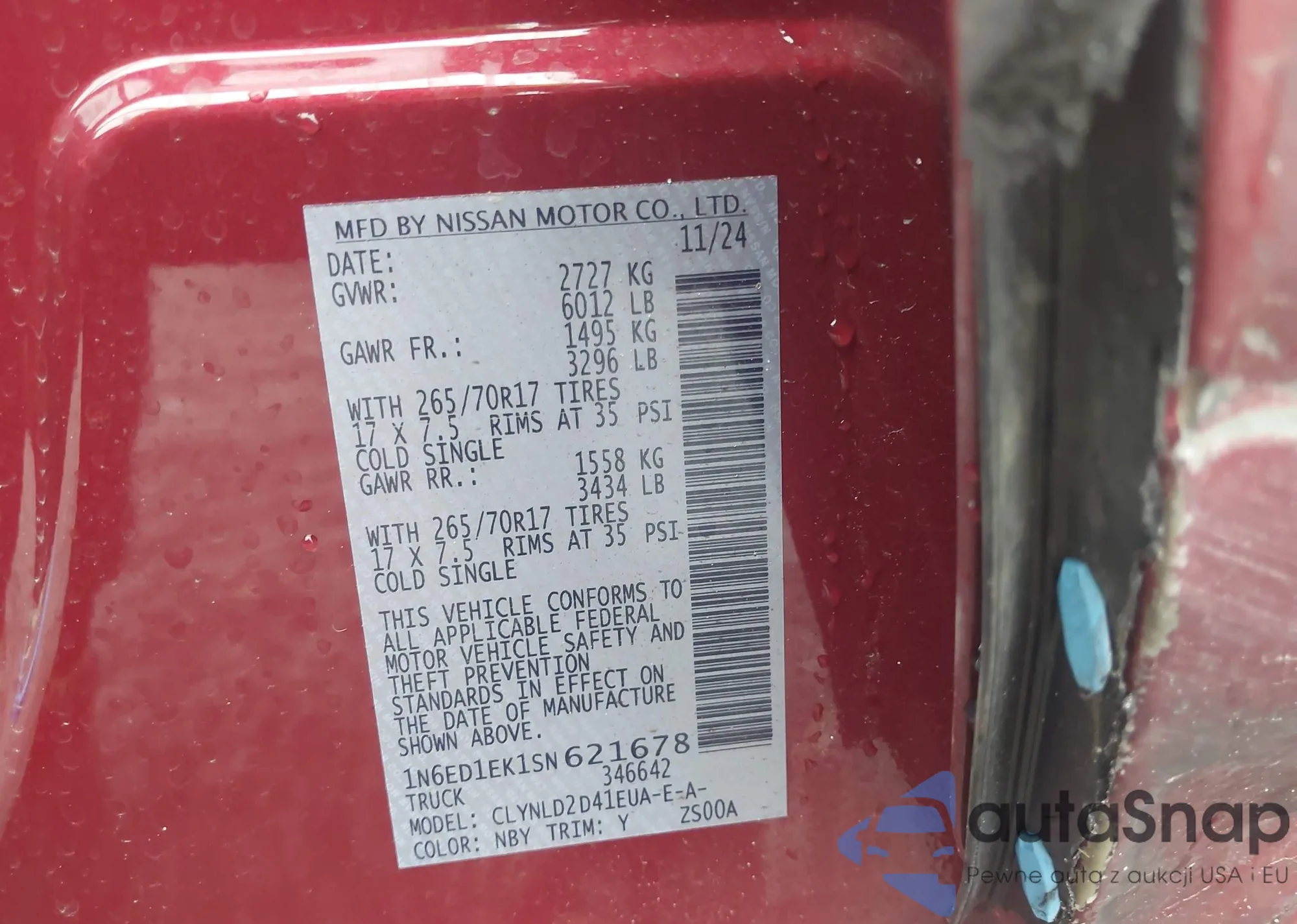 LOT: 42506431 VIN: 1N6ED1EK1SN621678