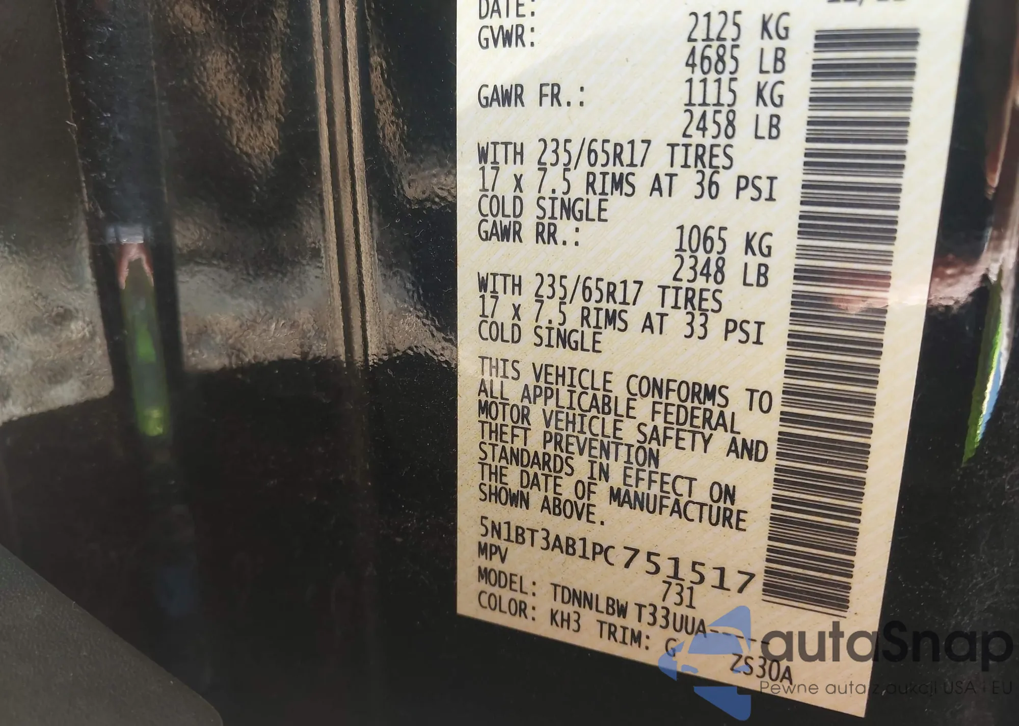 • VIN 5N1BT3AB1PC751517