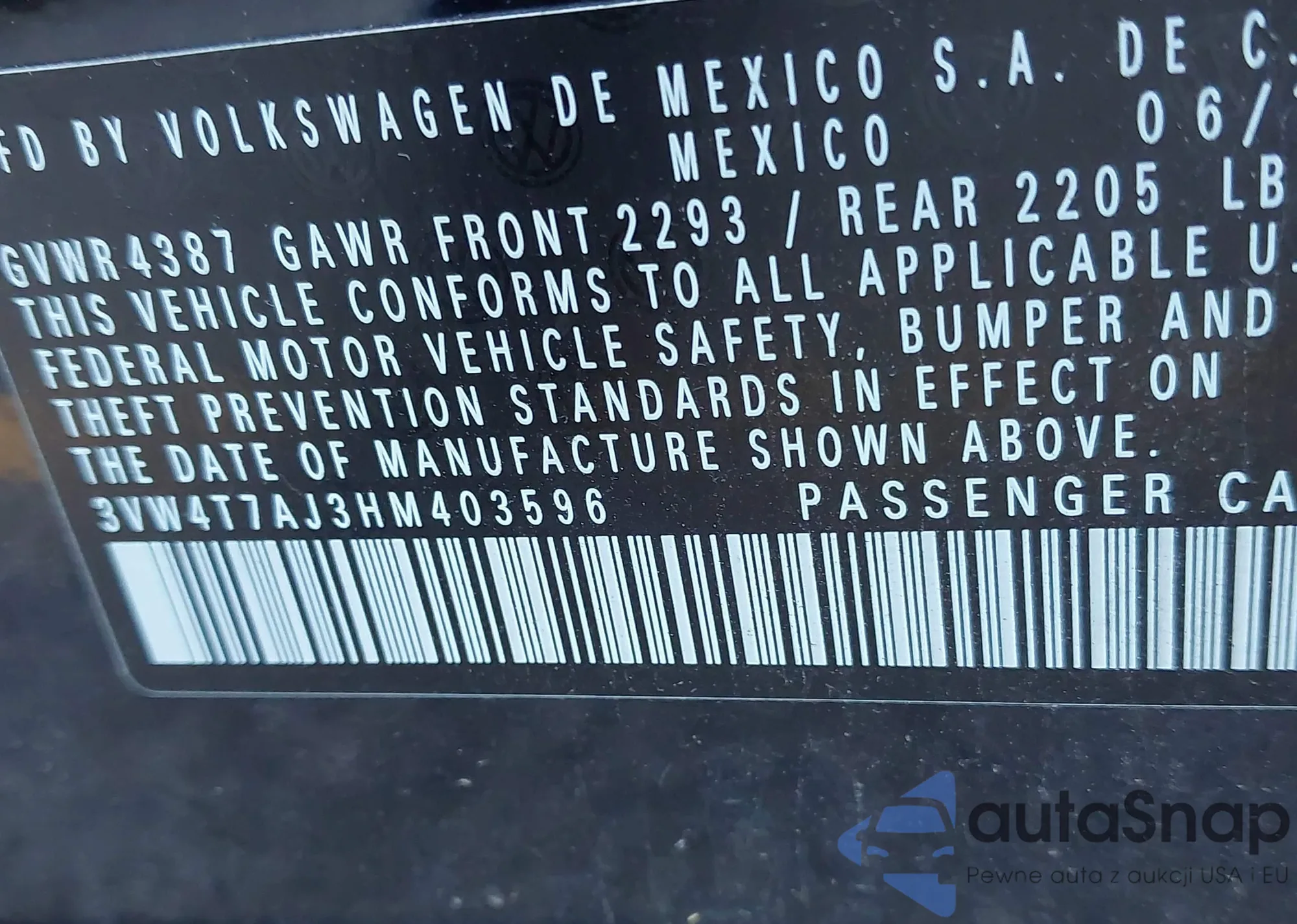 LOT: 42601939 VIN: JN1EV7APXHM738391