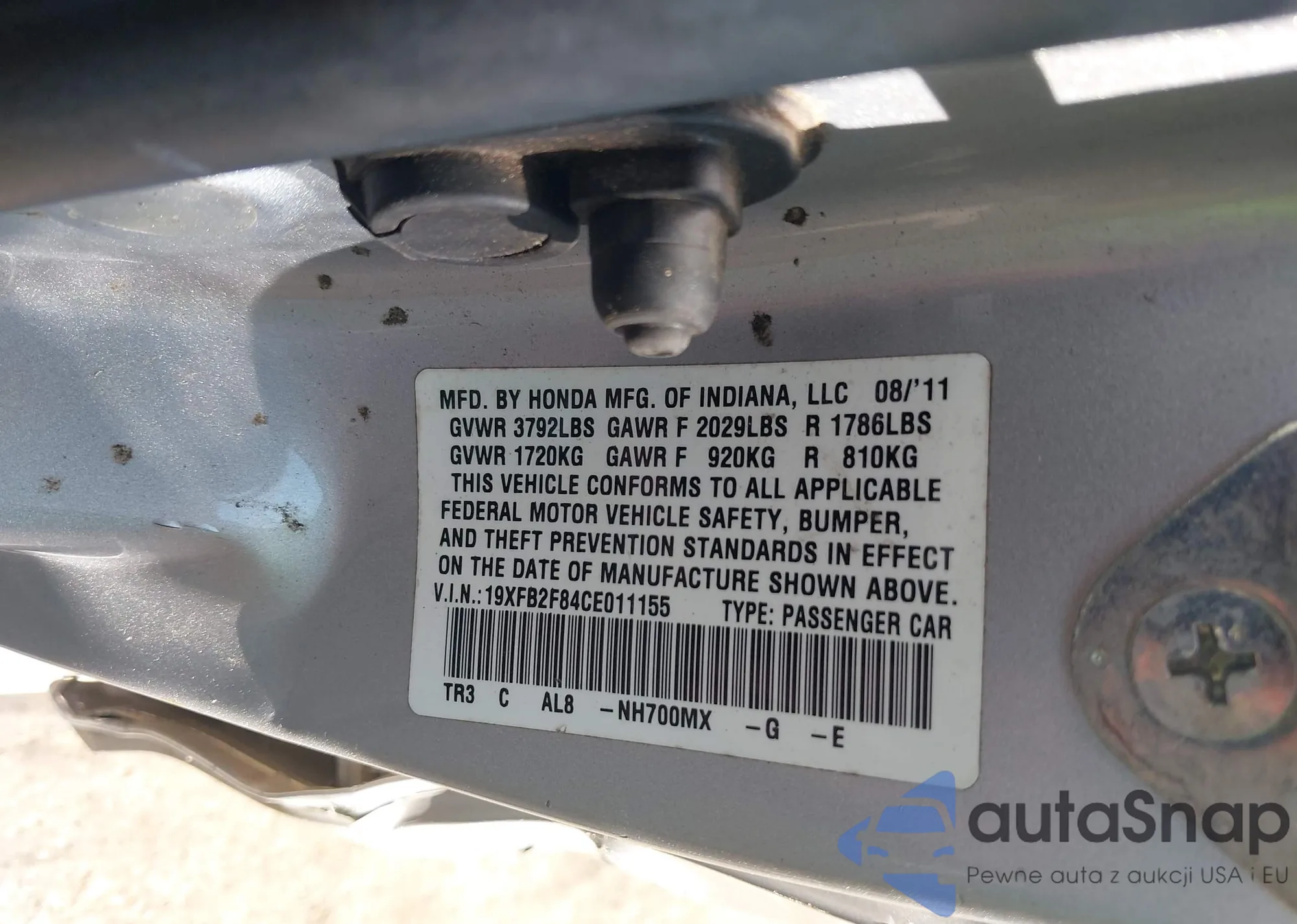• VIN 19XFB2F84CE011155