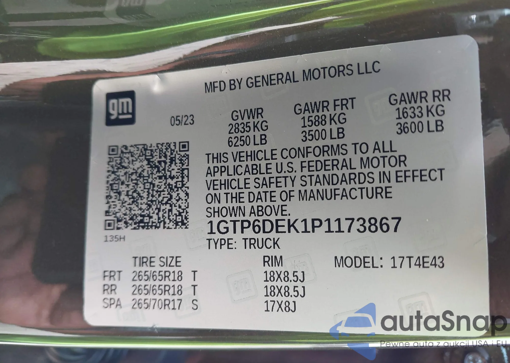 • VIN 1GTP6DEK1P1173867