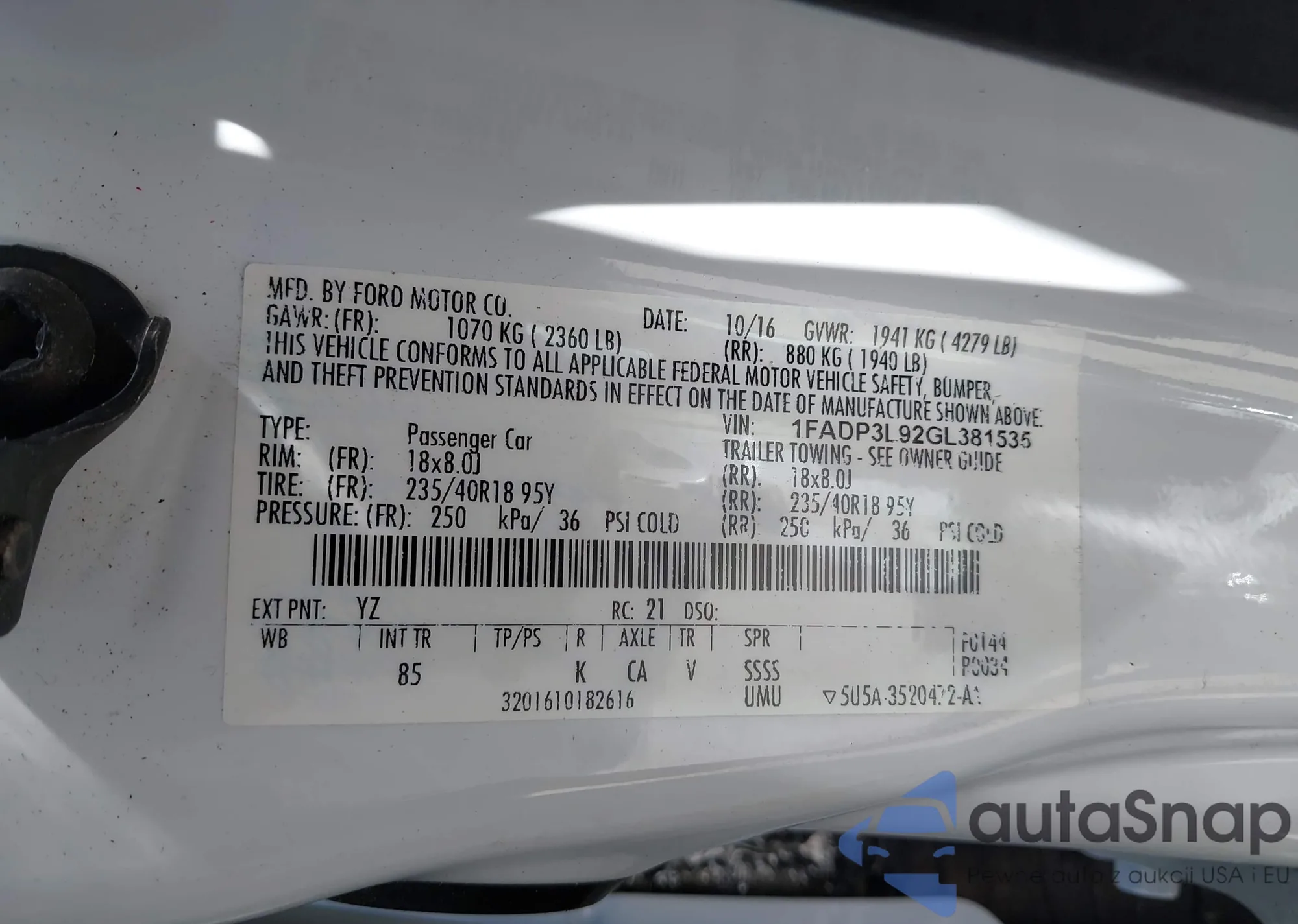 • VIN 1FADP3L92GL381535