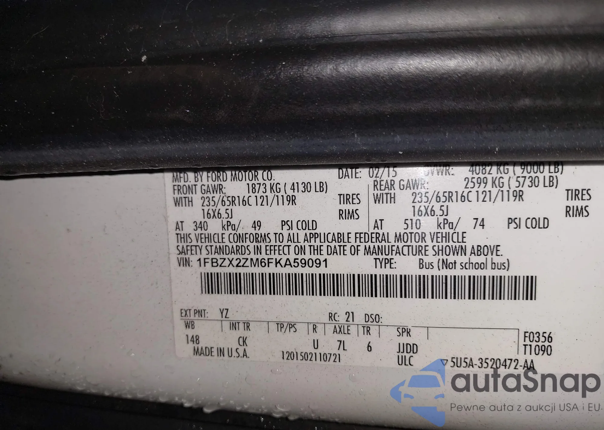 • VIN 1FBZX2ZM6FKA59091