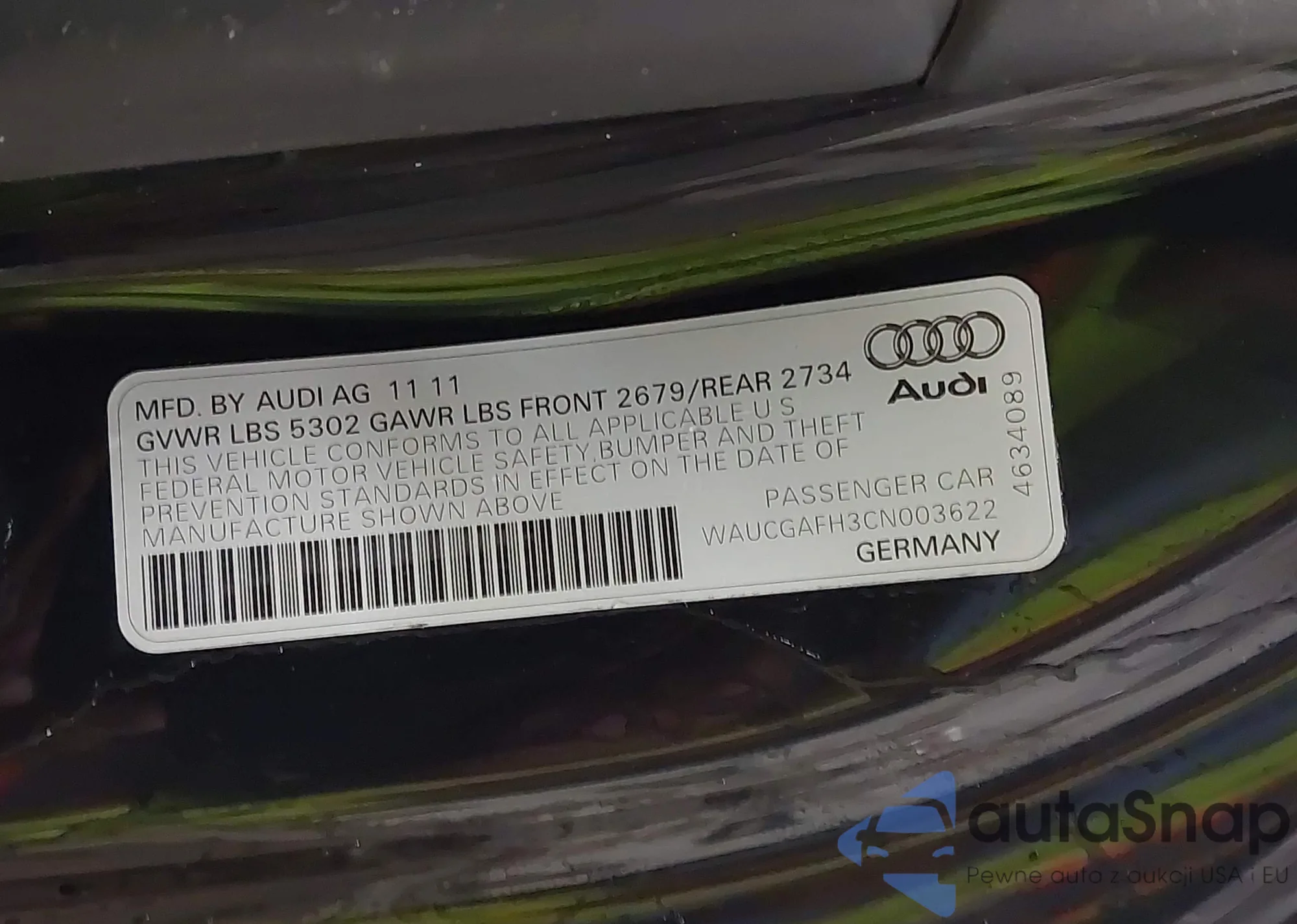 • VIN WAUCGAFH3CN003622