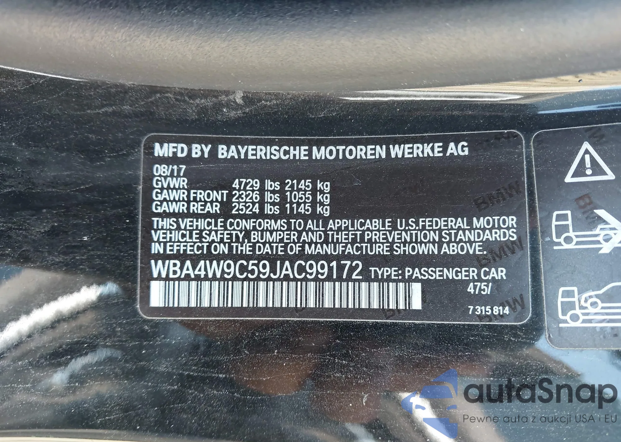 • VIN WBA4W9C59JAC99172