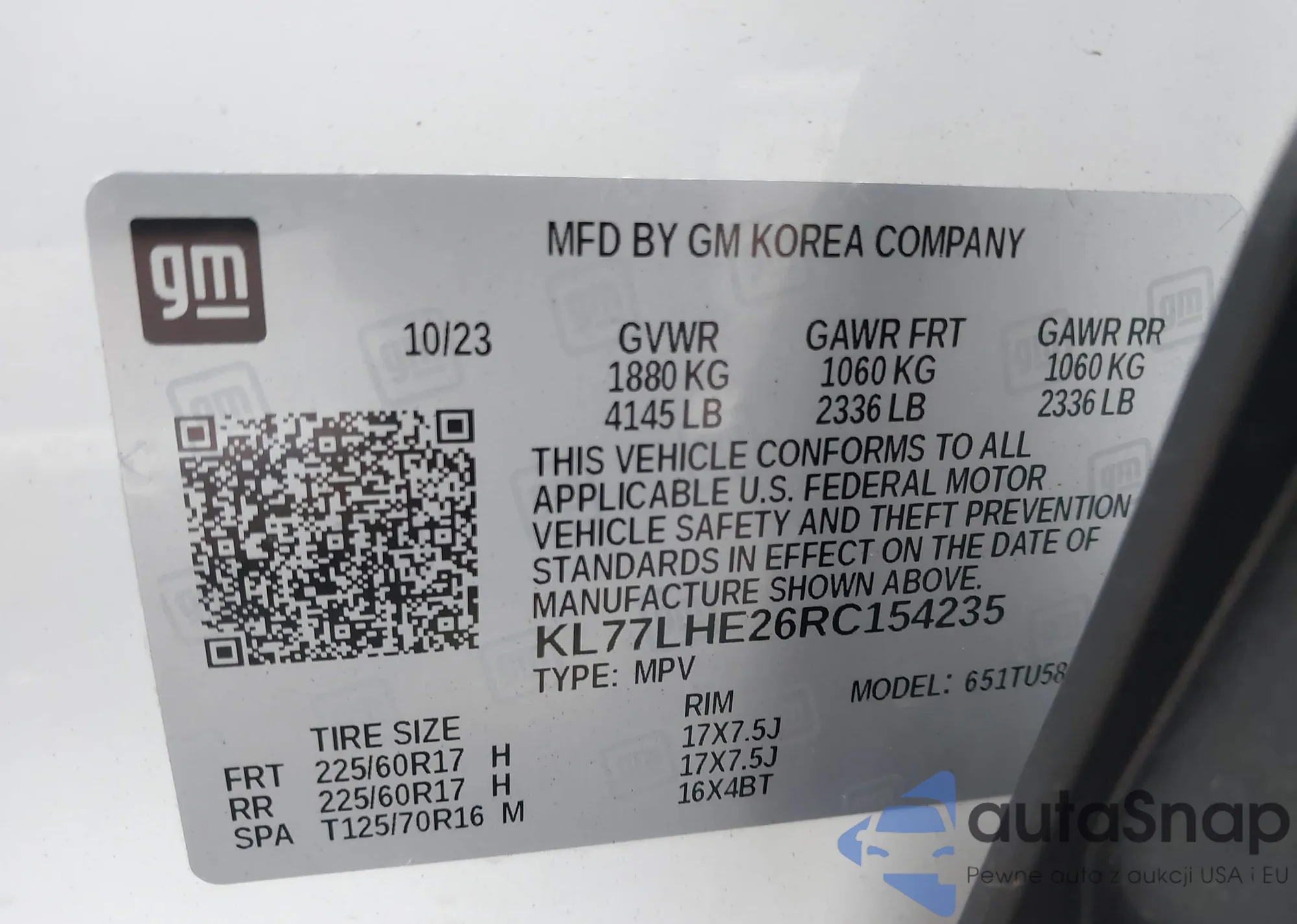 LOT: 42607855 VIN: KL77LHE26RC154235