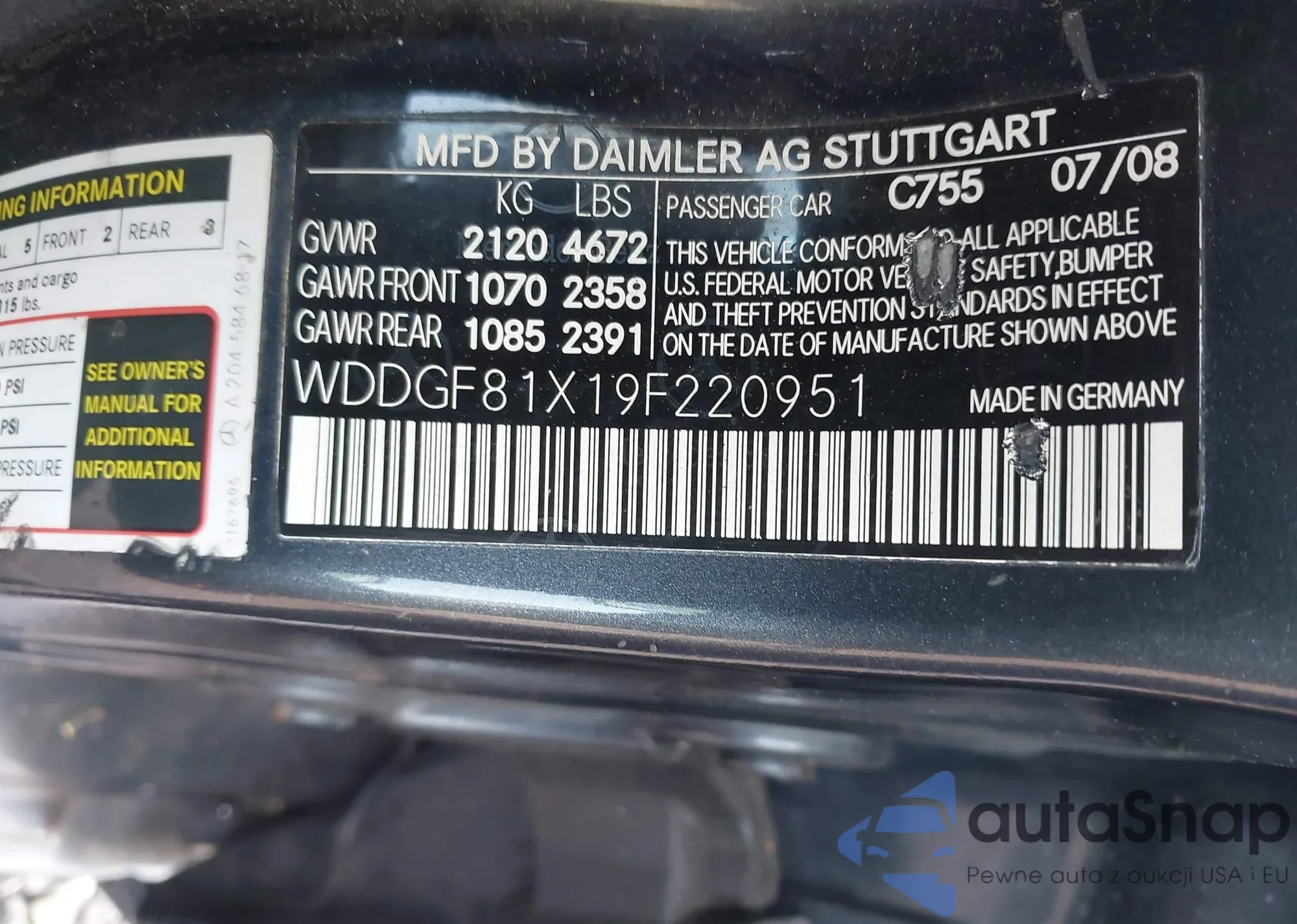 LOT: 42622929 VIN: WDDGF81X19F220951