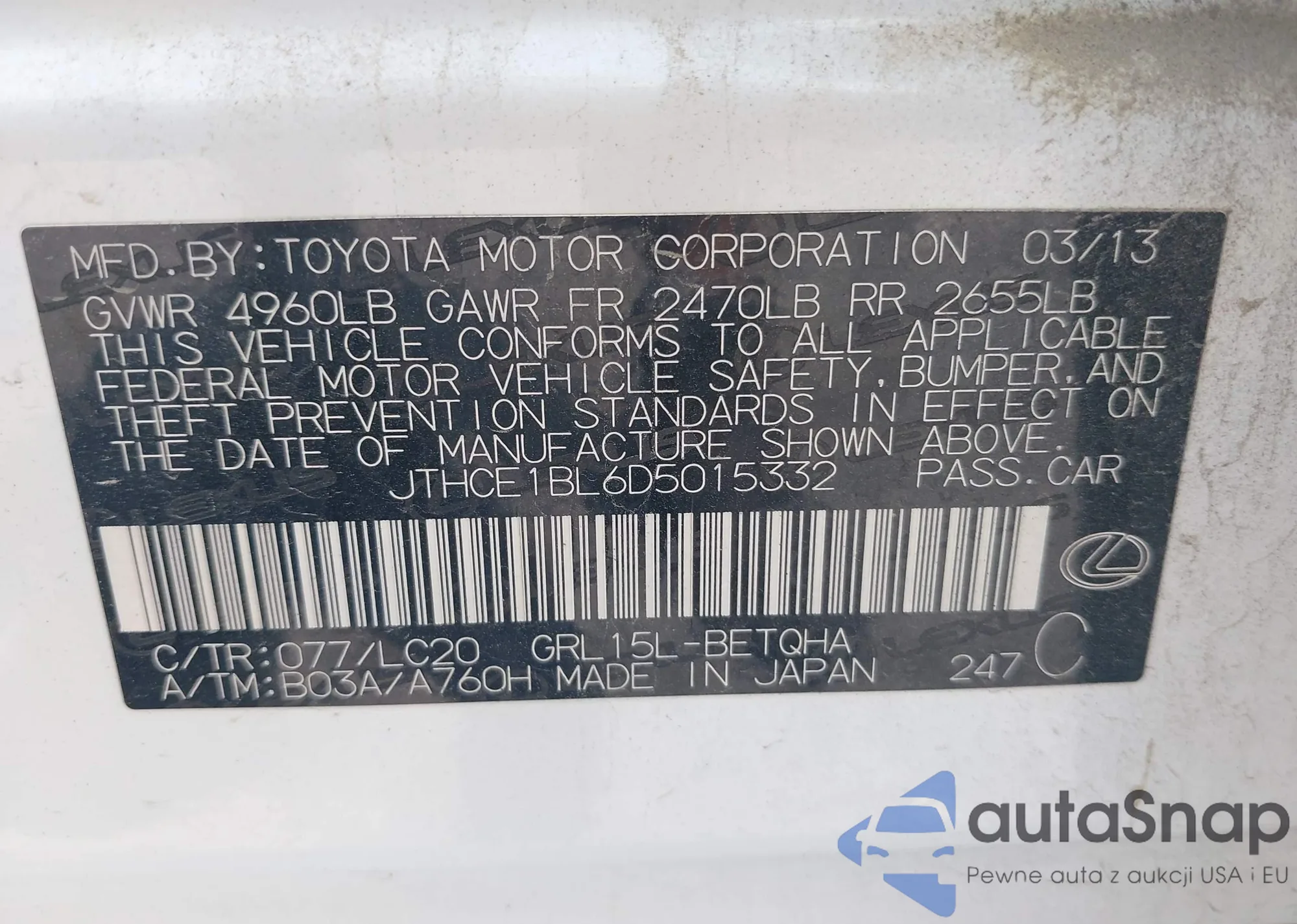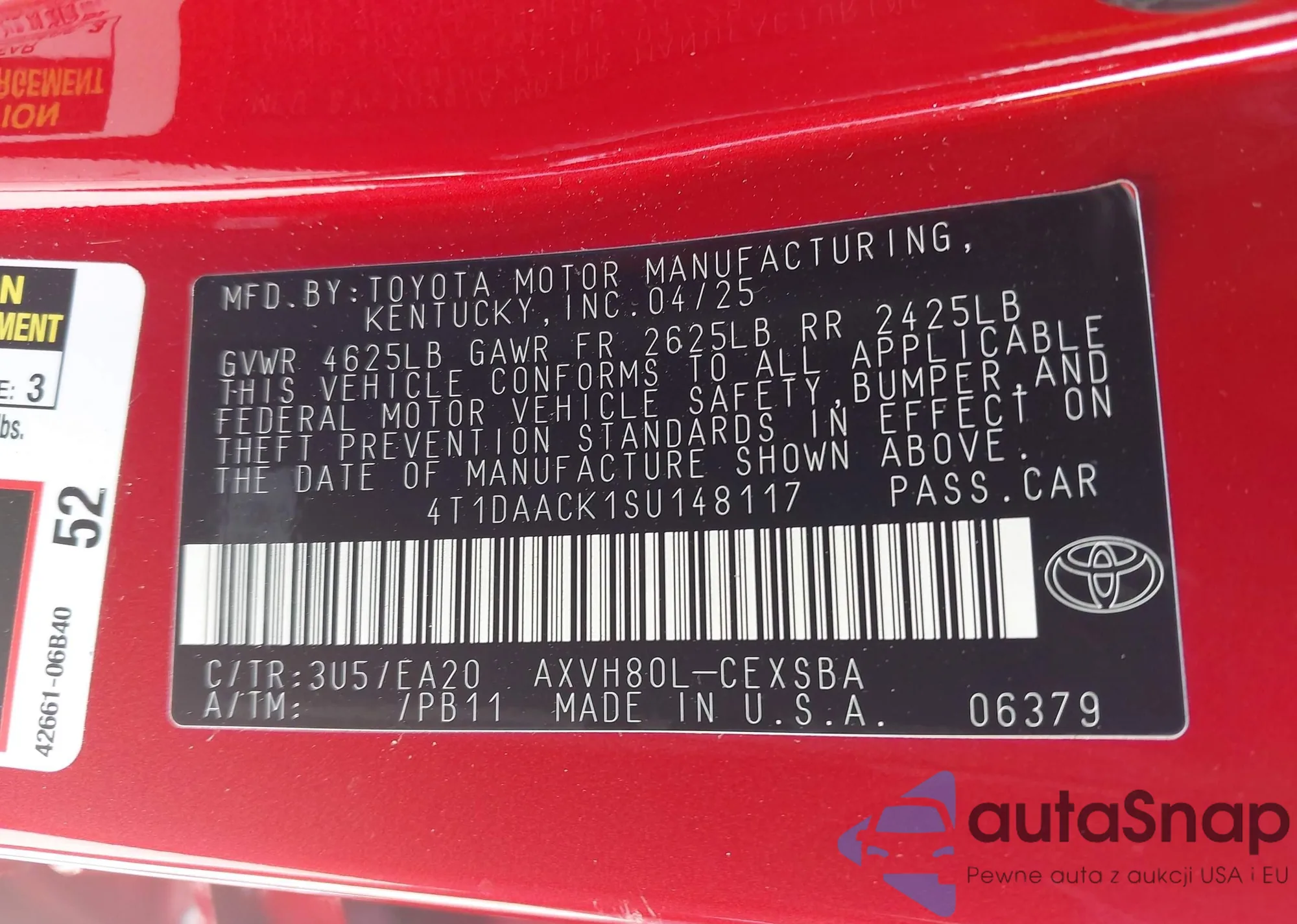 LOT: 42789766 VIN: 4T1DAACK1SU148117