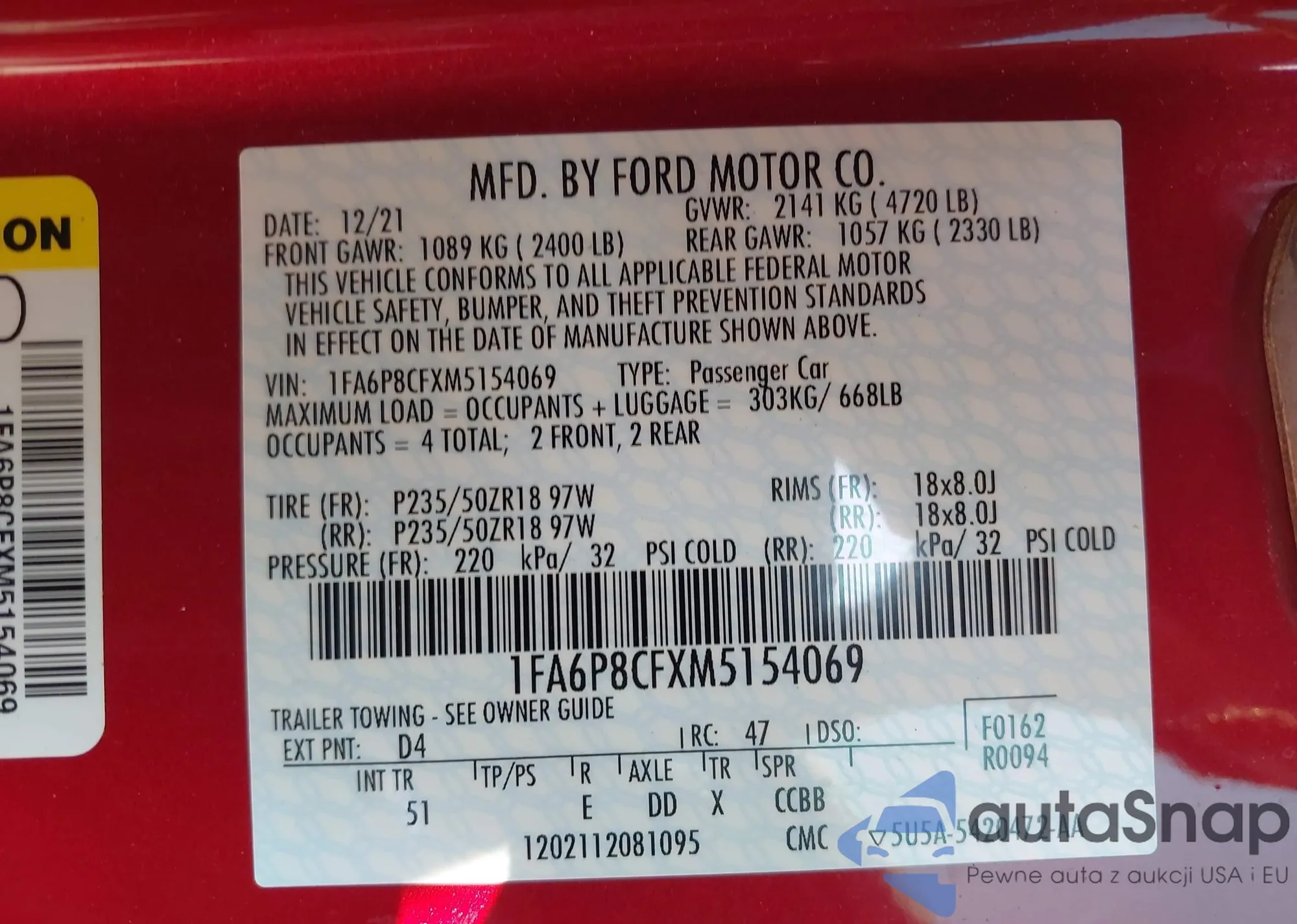 • VIN 1FA6P8CFXM5154069