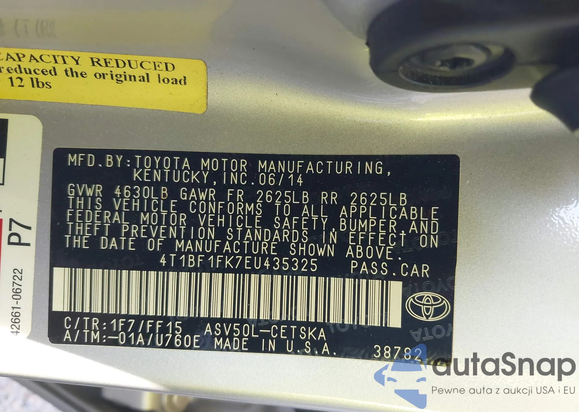 • VIN 4T1BF1FK7EU435325