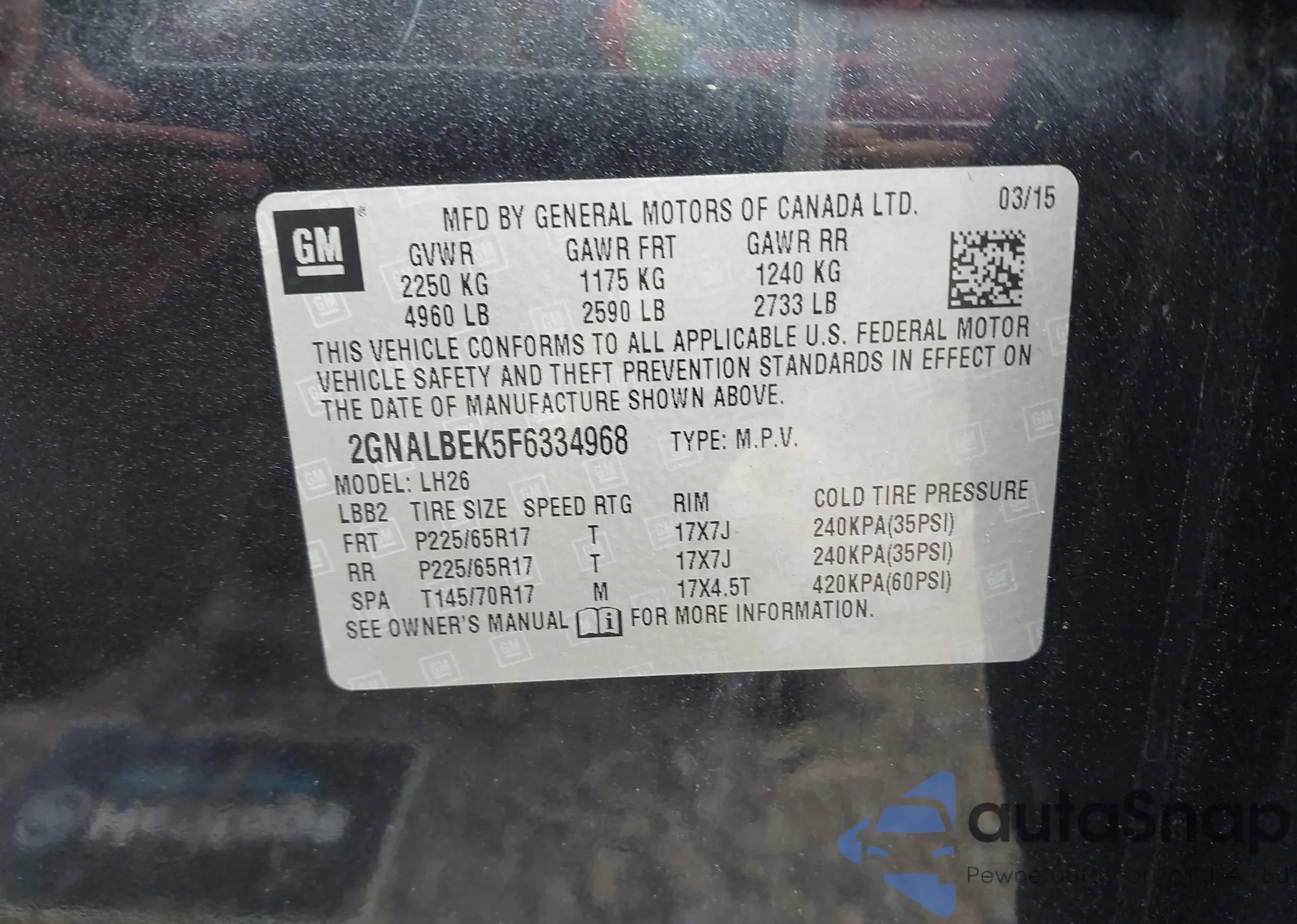 • VIN 2GNALBEK5F6334968
