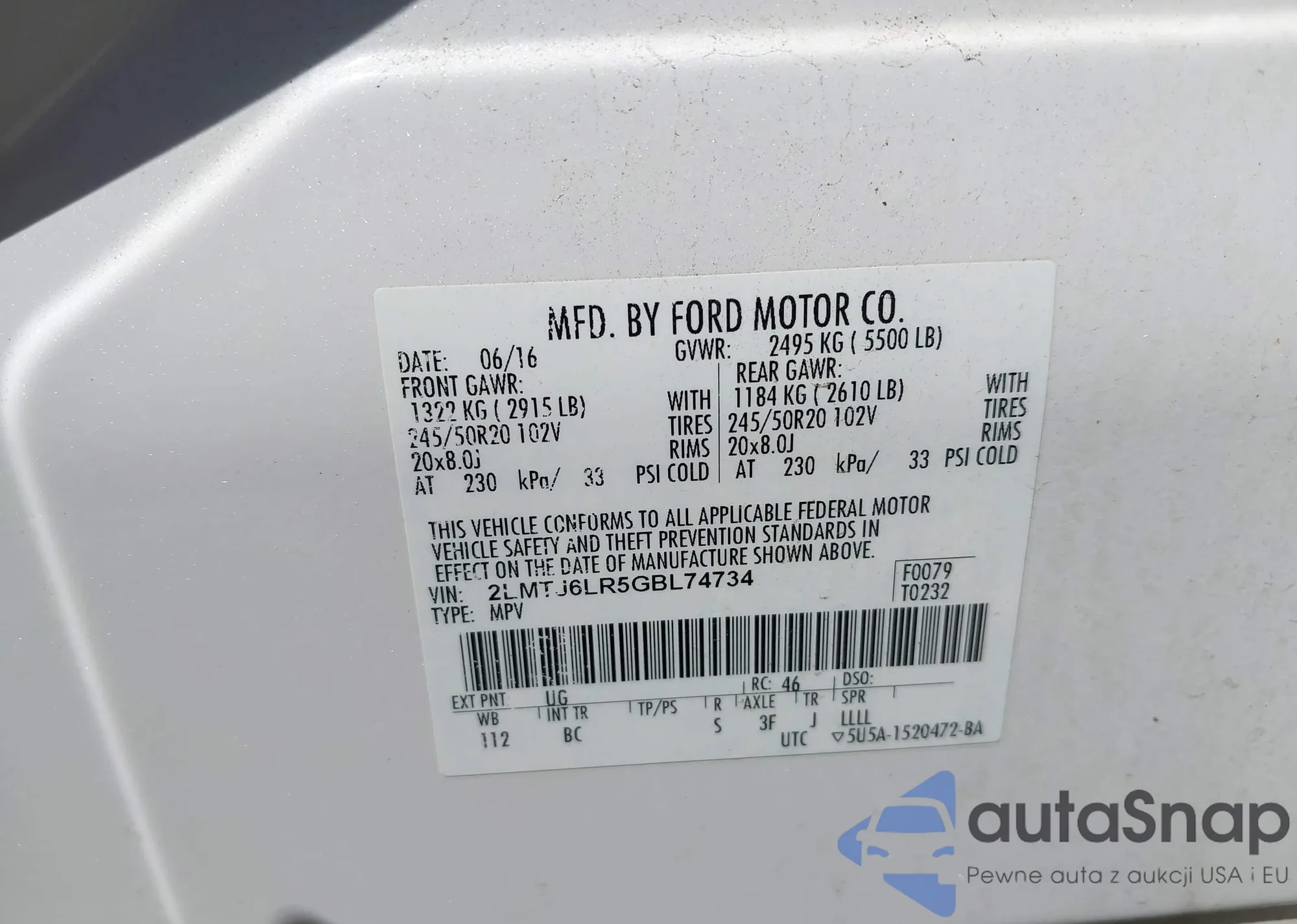 LOT: 42394898 VIN: 1FMCU0JX6EUD36700