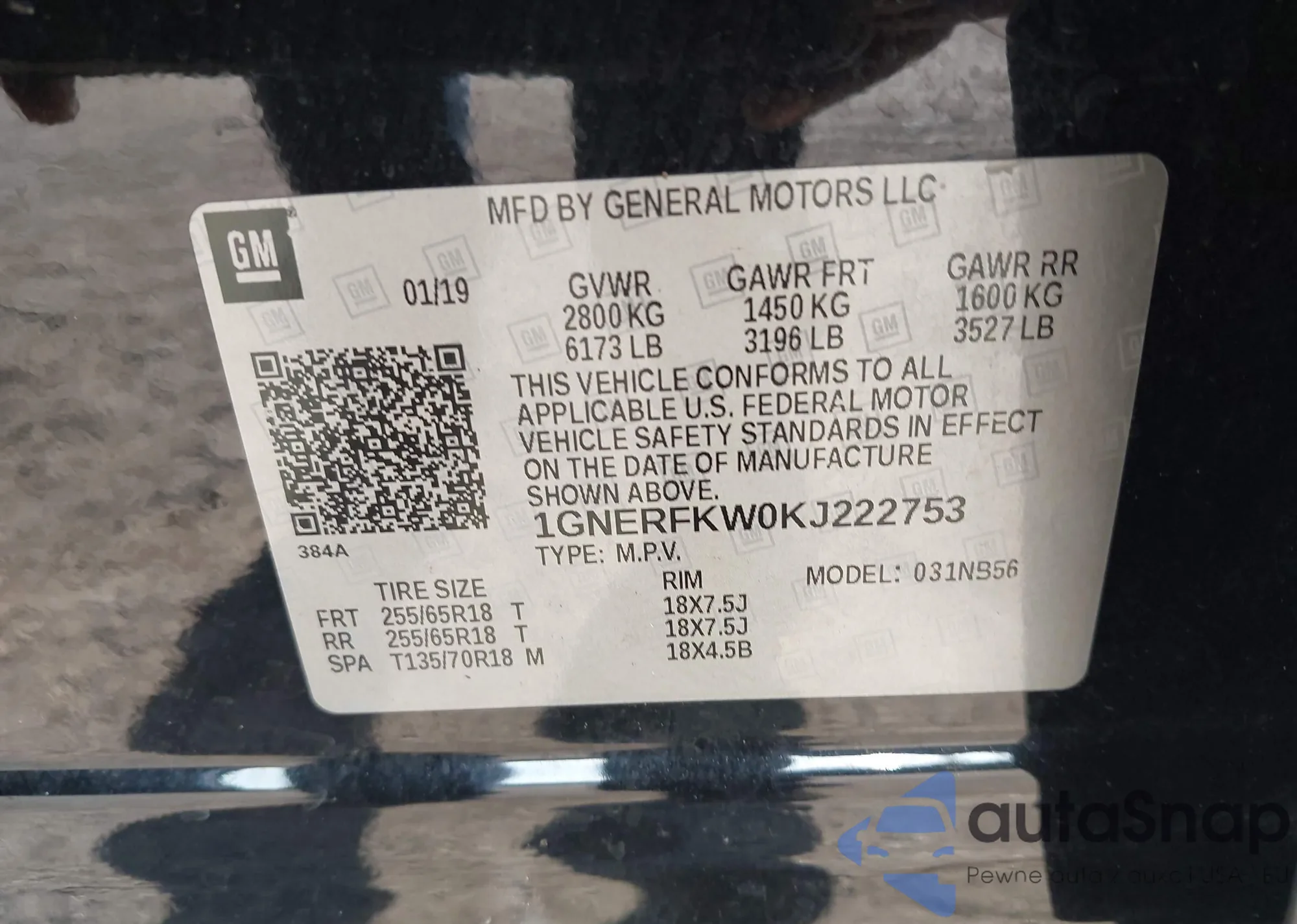 • VIN 1GNERFKW0KJ222753