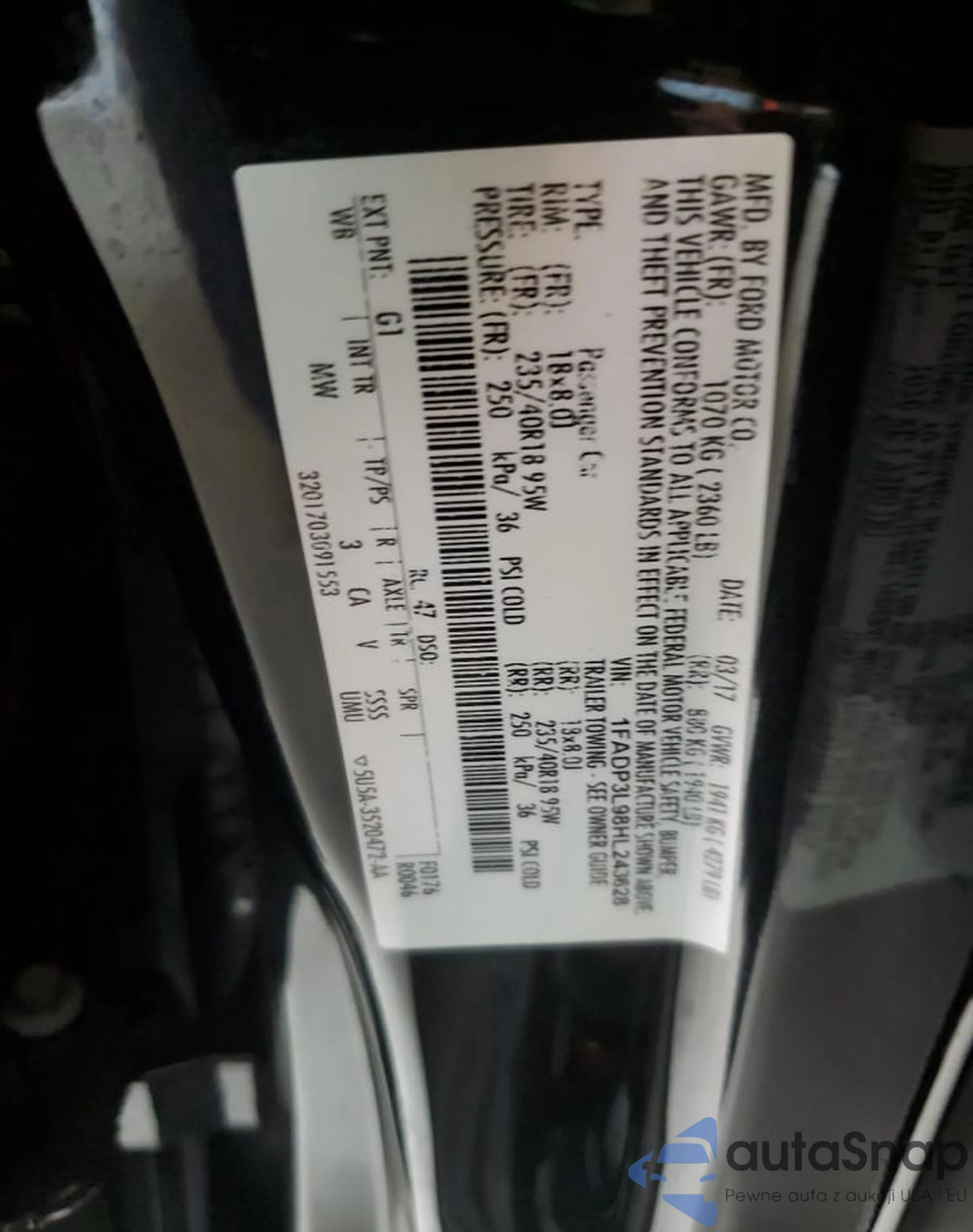 • VIN 1FADP3L98HL243628