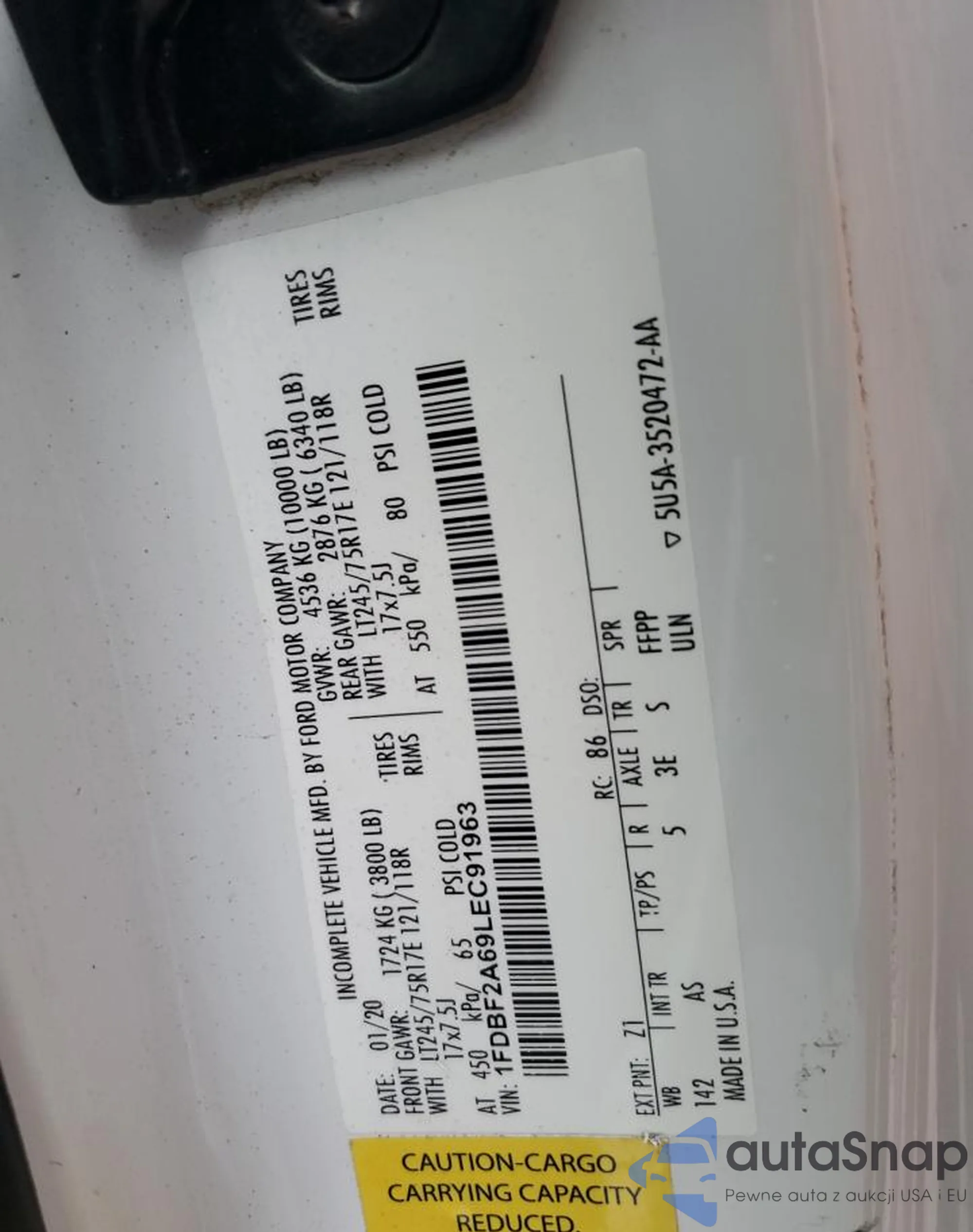 LOT: 75594444 VIN: 1FDBF2A69LEC91963