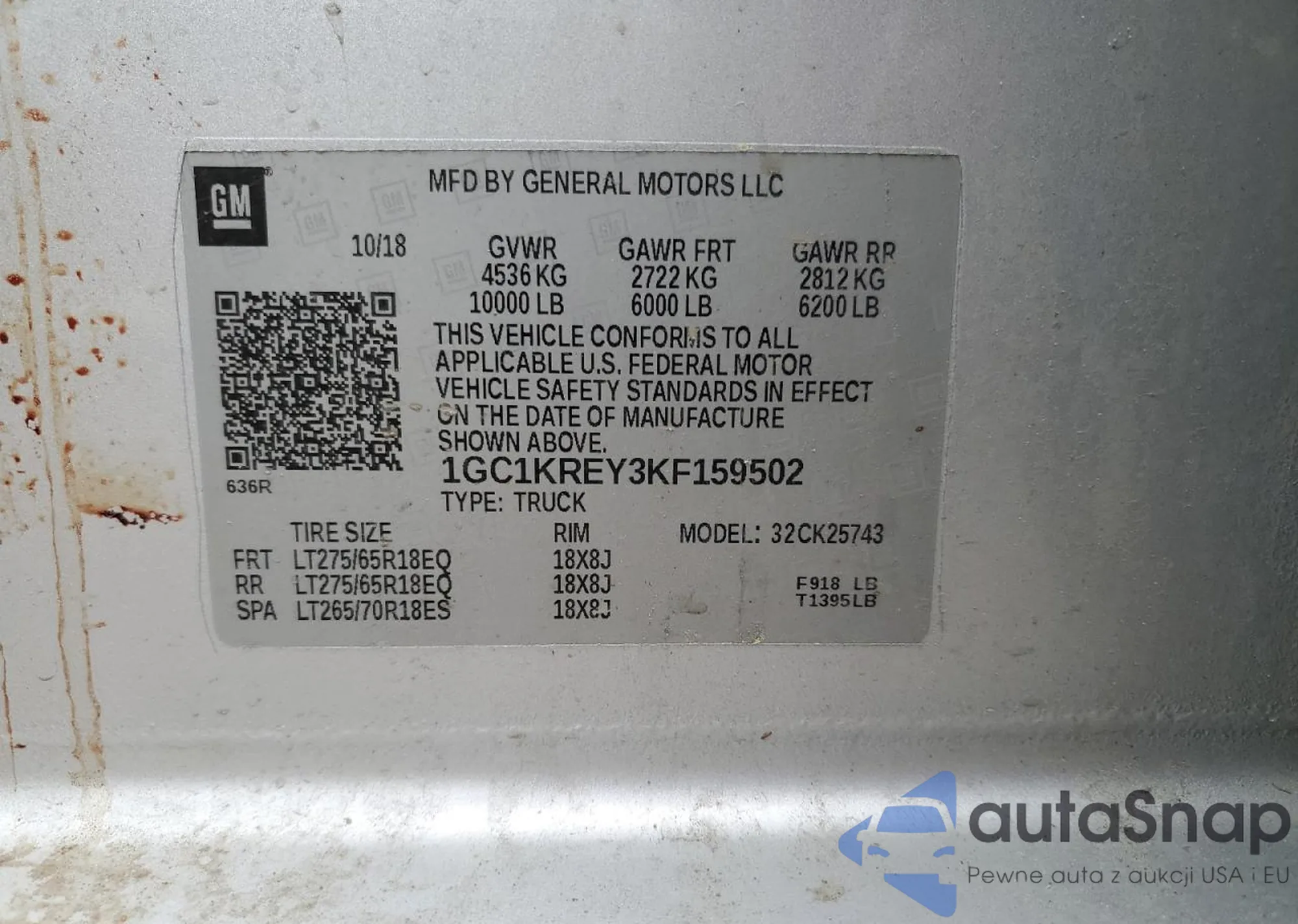• VIN 1GC1KREY3KF159502