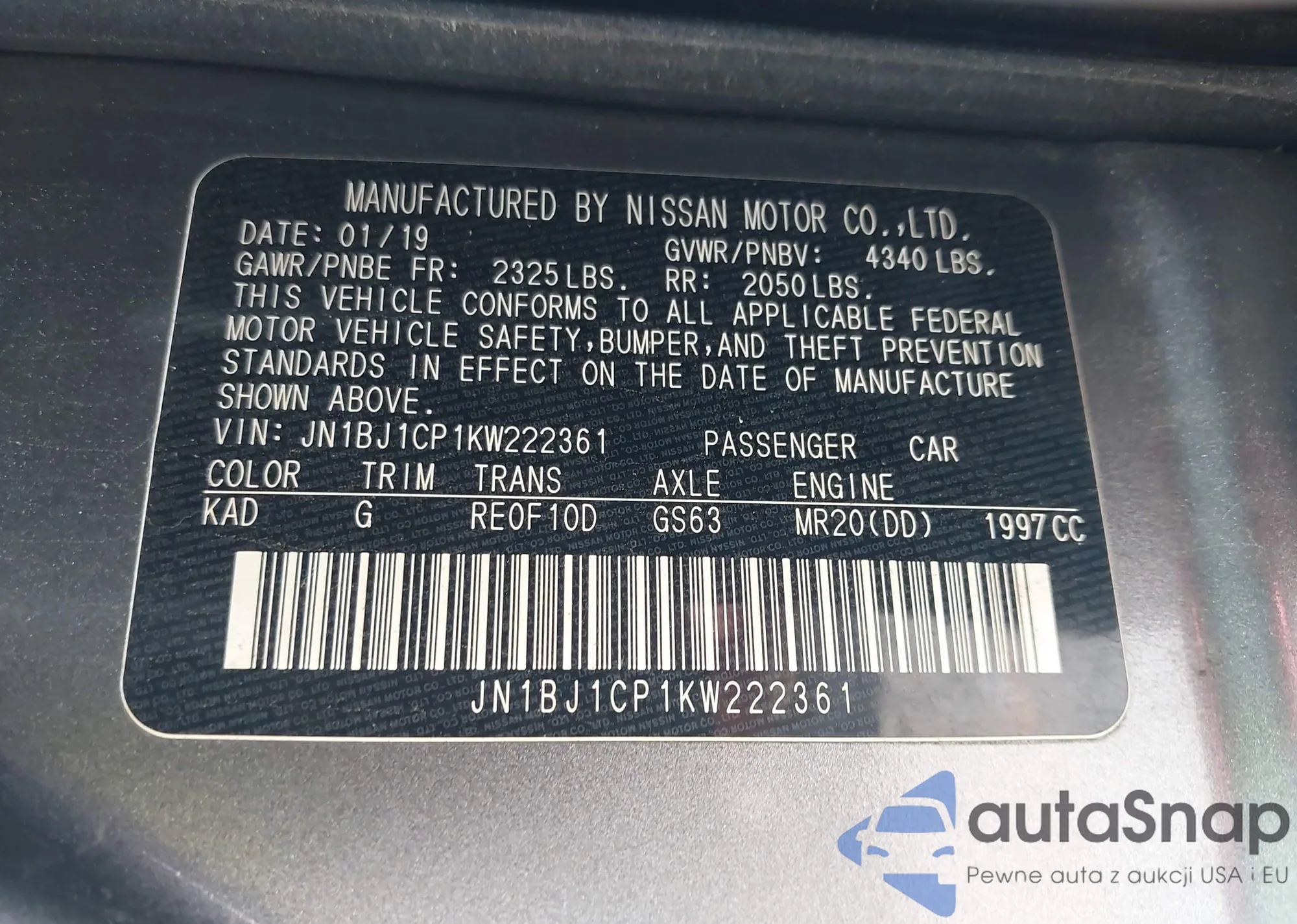 LOT: 42631670 VIN: JN1BJ1CP1KW222361