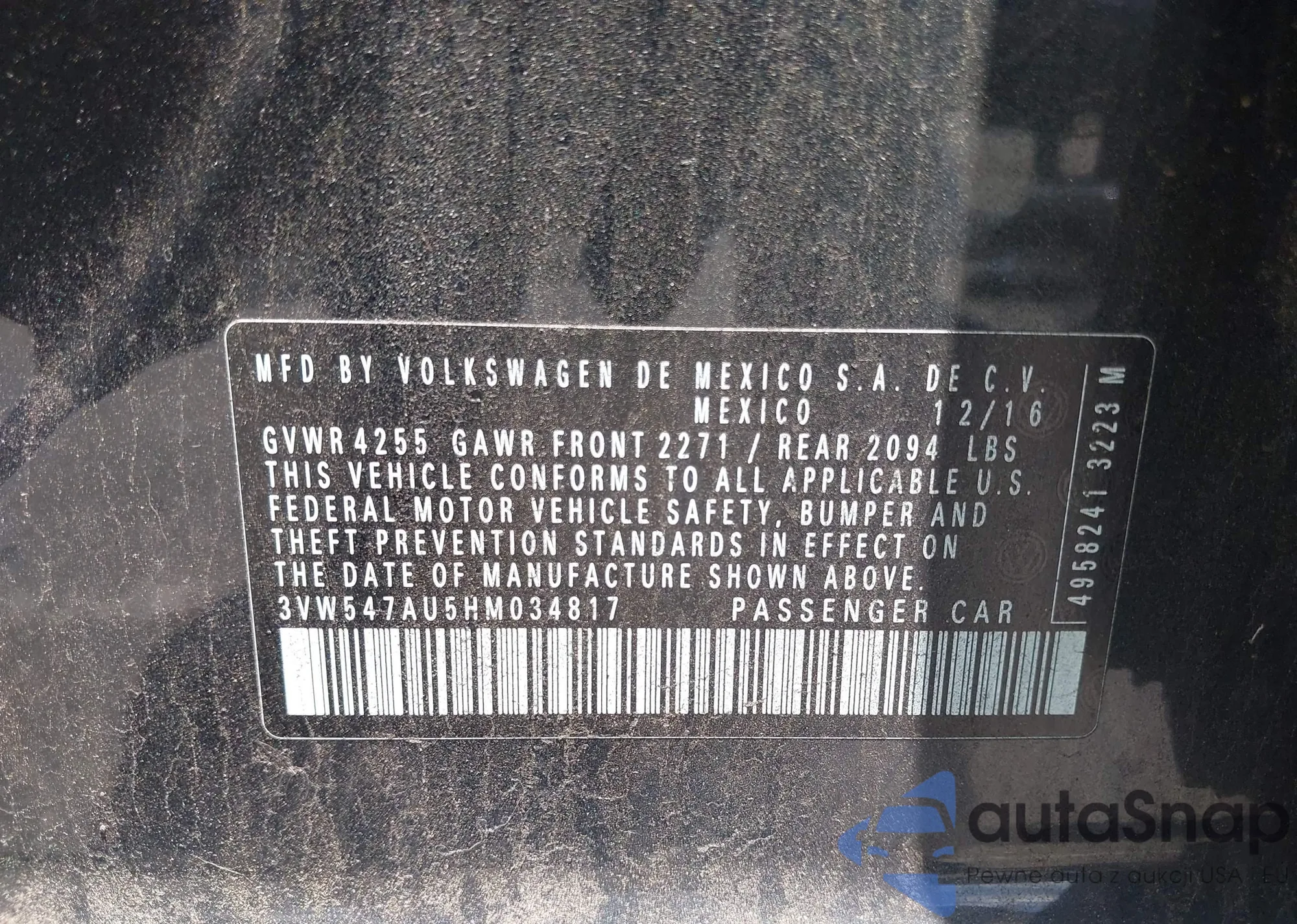 • VIN 3VW547AU5HM034817