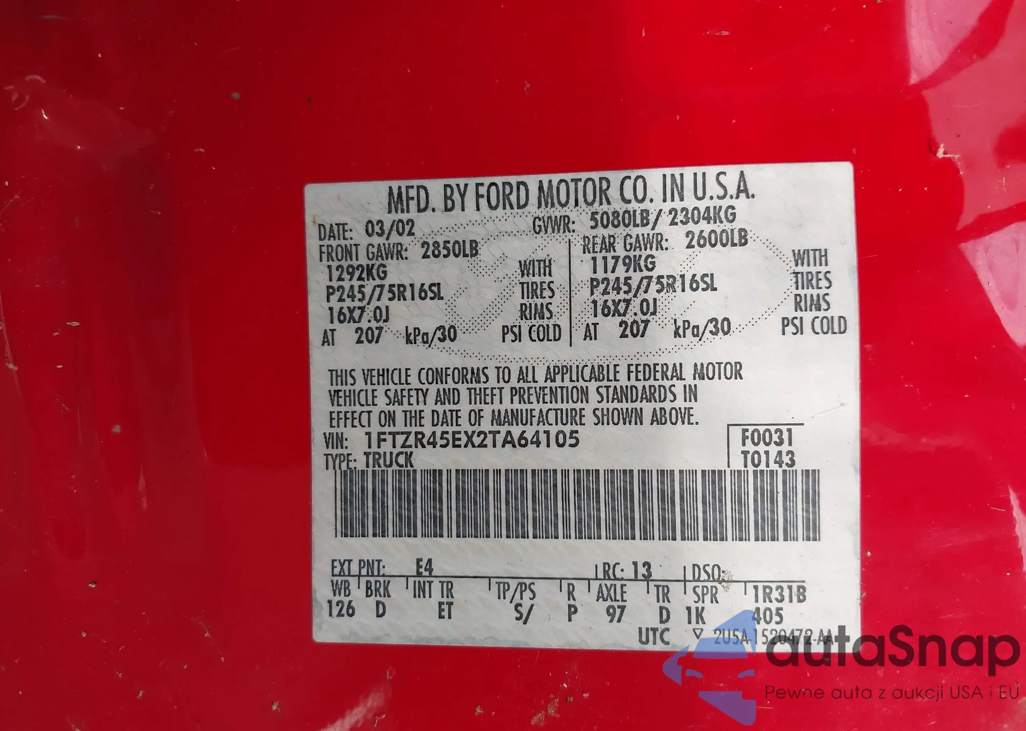 • VIN 1FTZR45EX2TA64105
