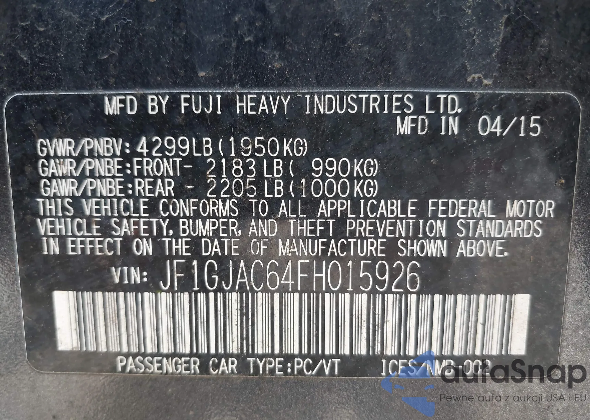 • VIN JF1GJAC64FH015926