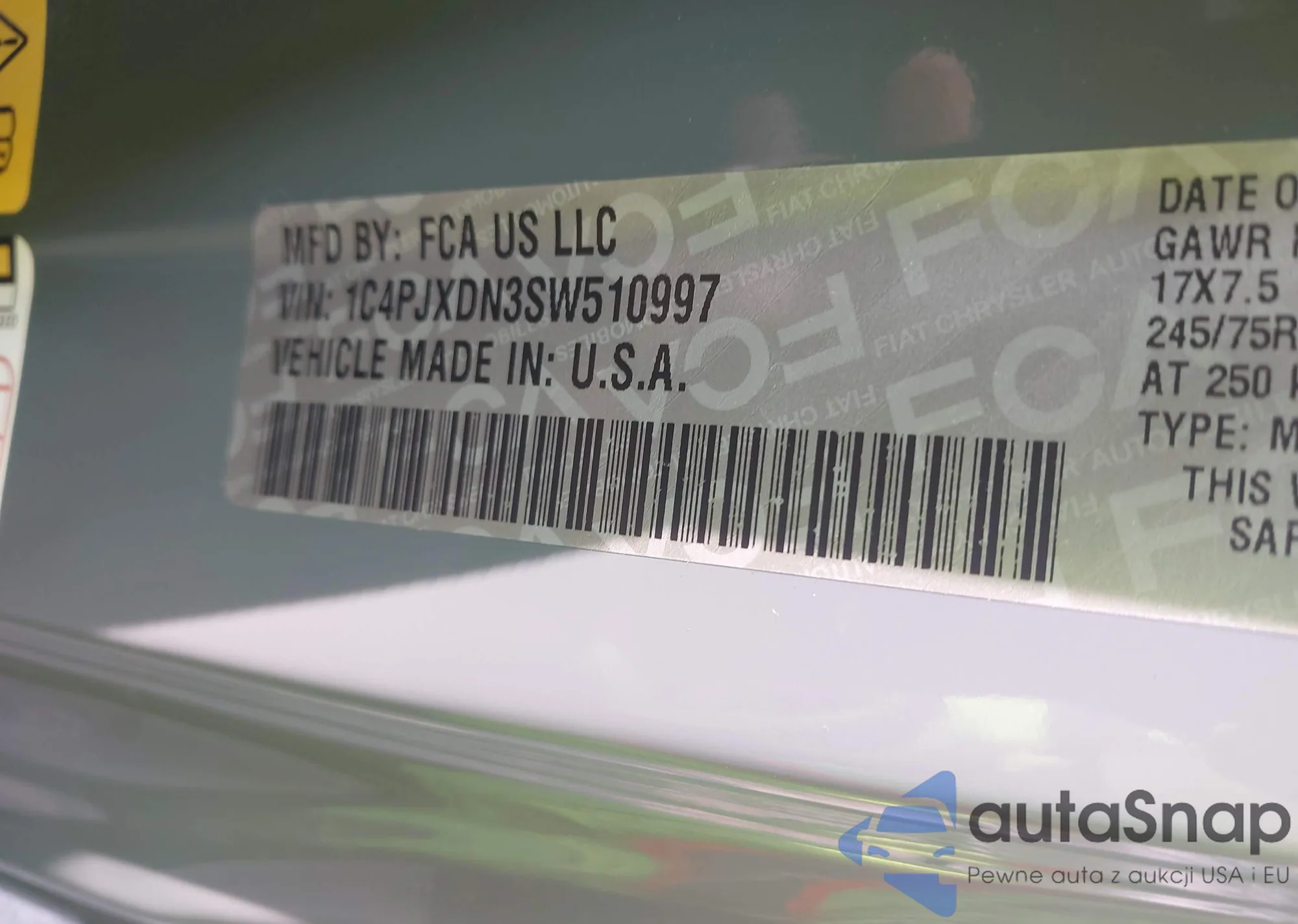 • VIN 1C4PJXDN3SW510997